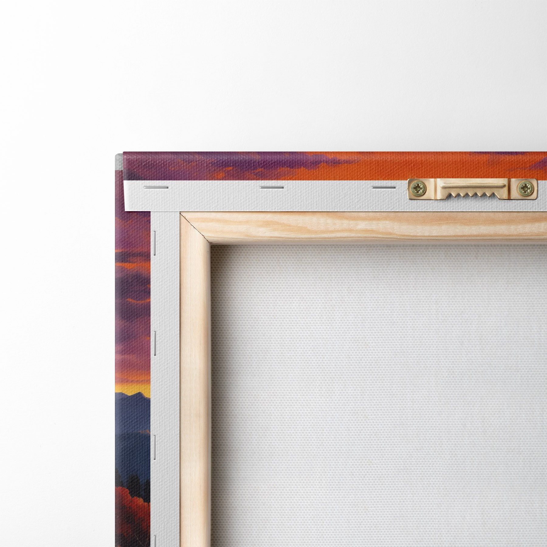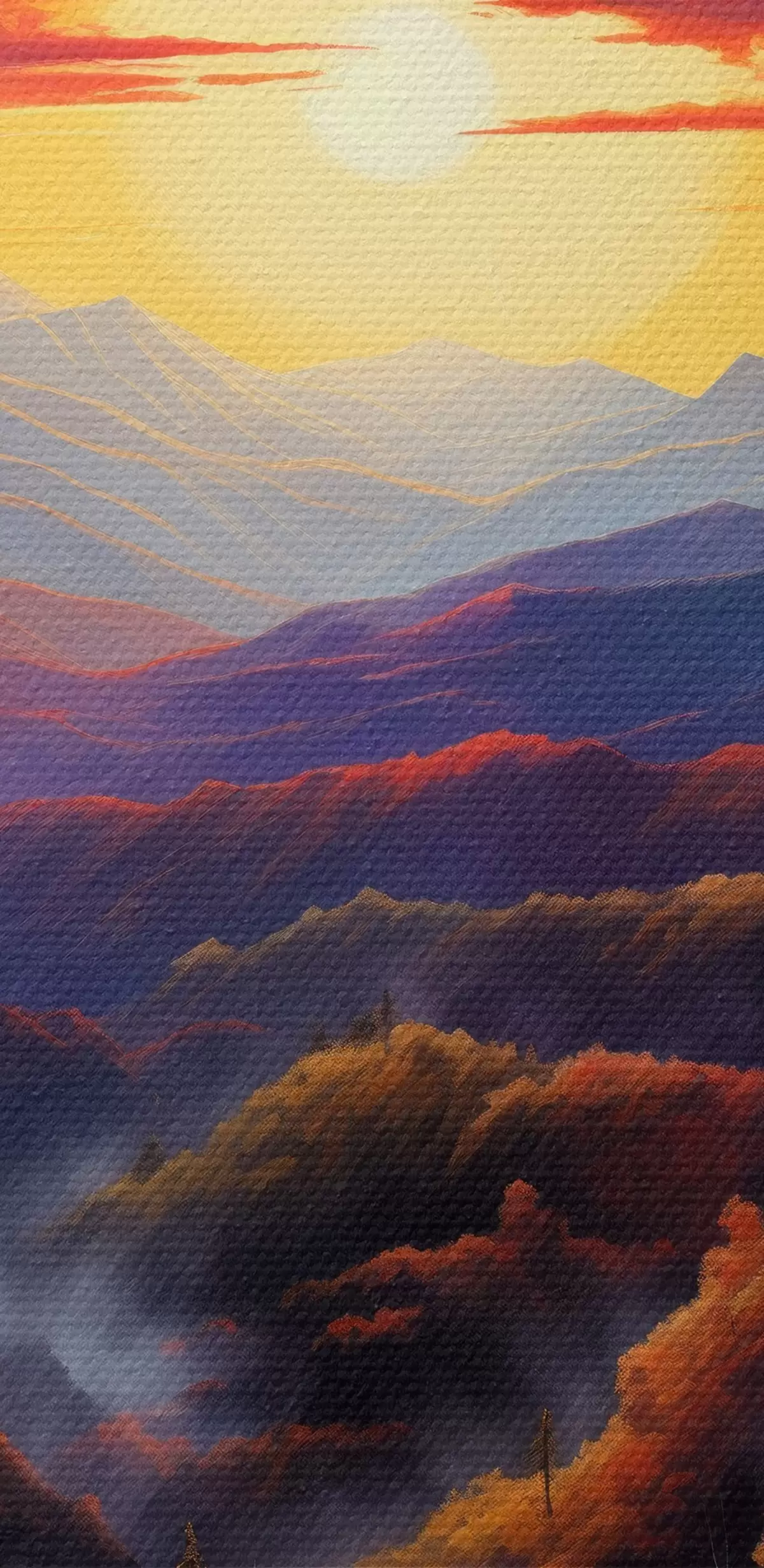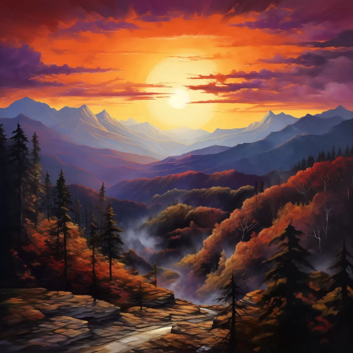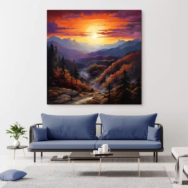 Pictură pe pânză Pădure și munți la apus de soare Nr s44045