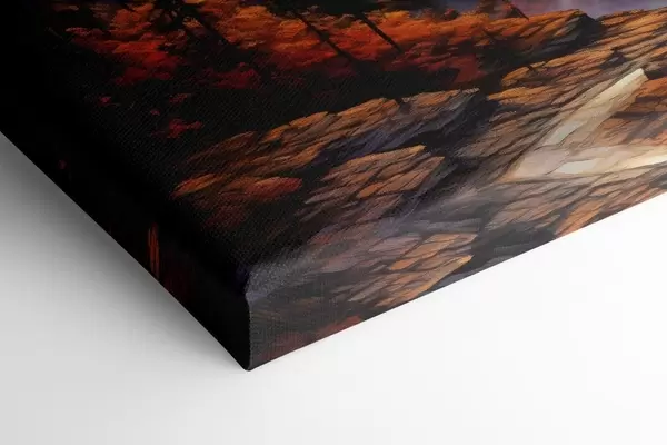 Pictură pe pânză Pădure și munți la apus de soare Nr s44045