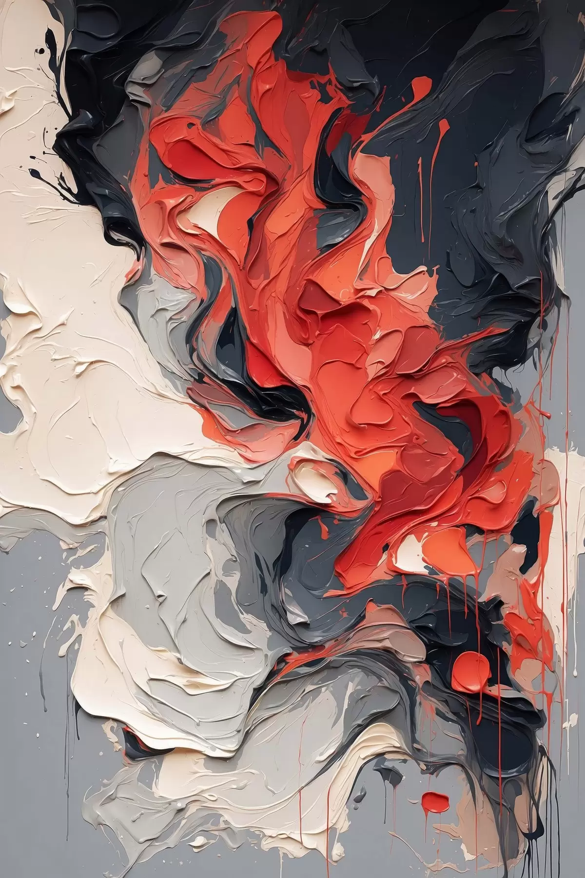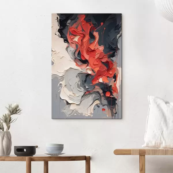 Tablouri Pictură abstractă în ulei în culorile roșu, negru și gri s44079