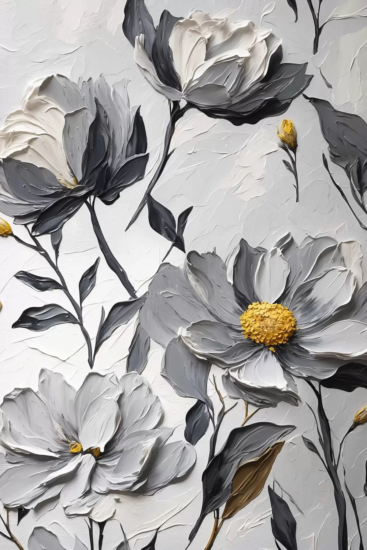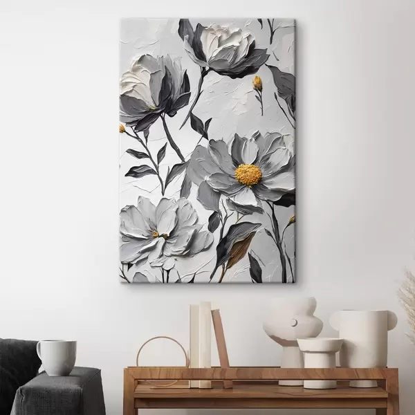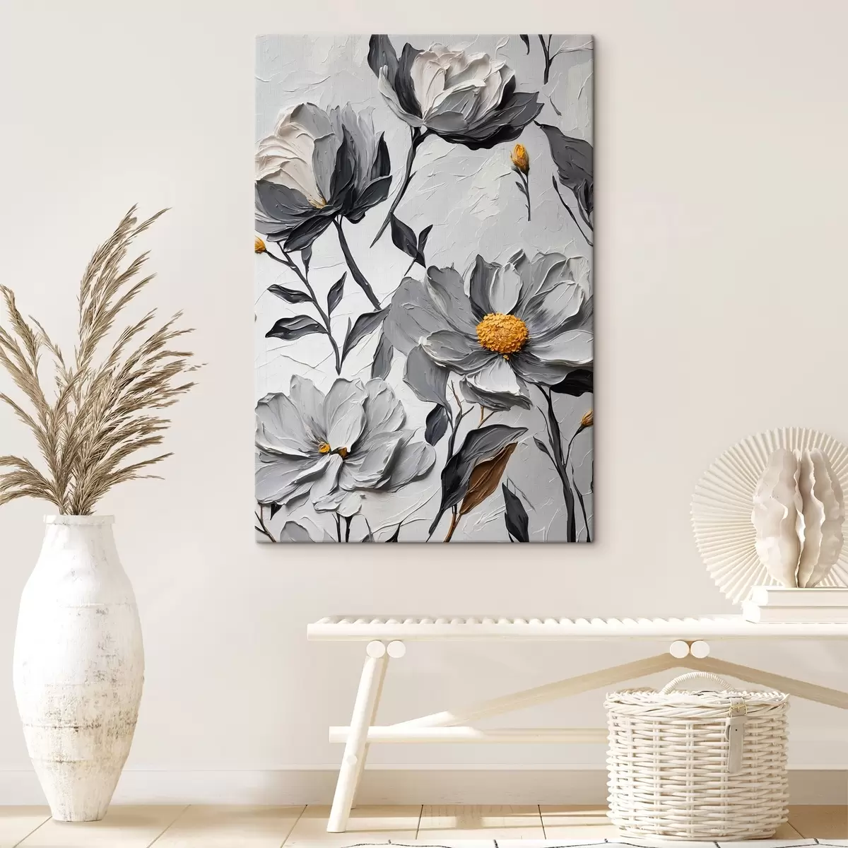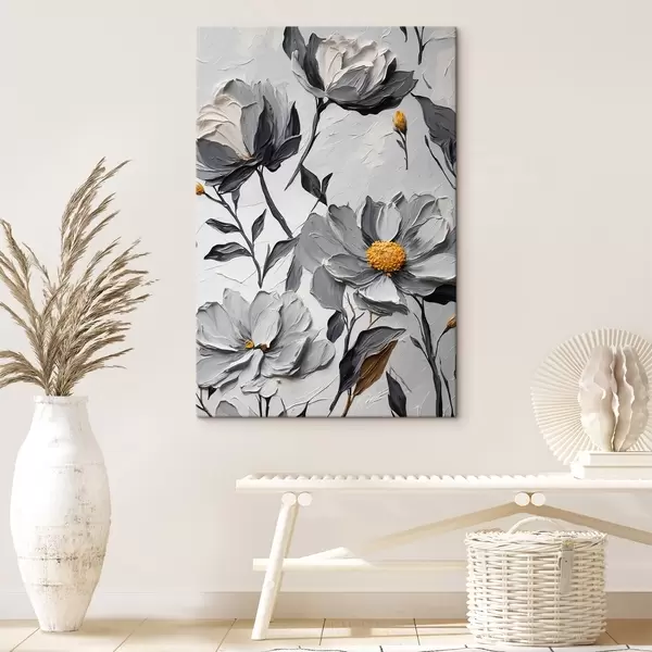 Tablouri Flori gri pe fundal gri în stil pictură în ulei s44080