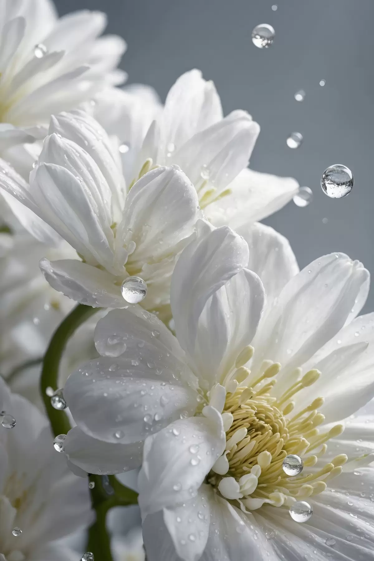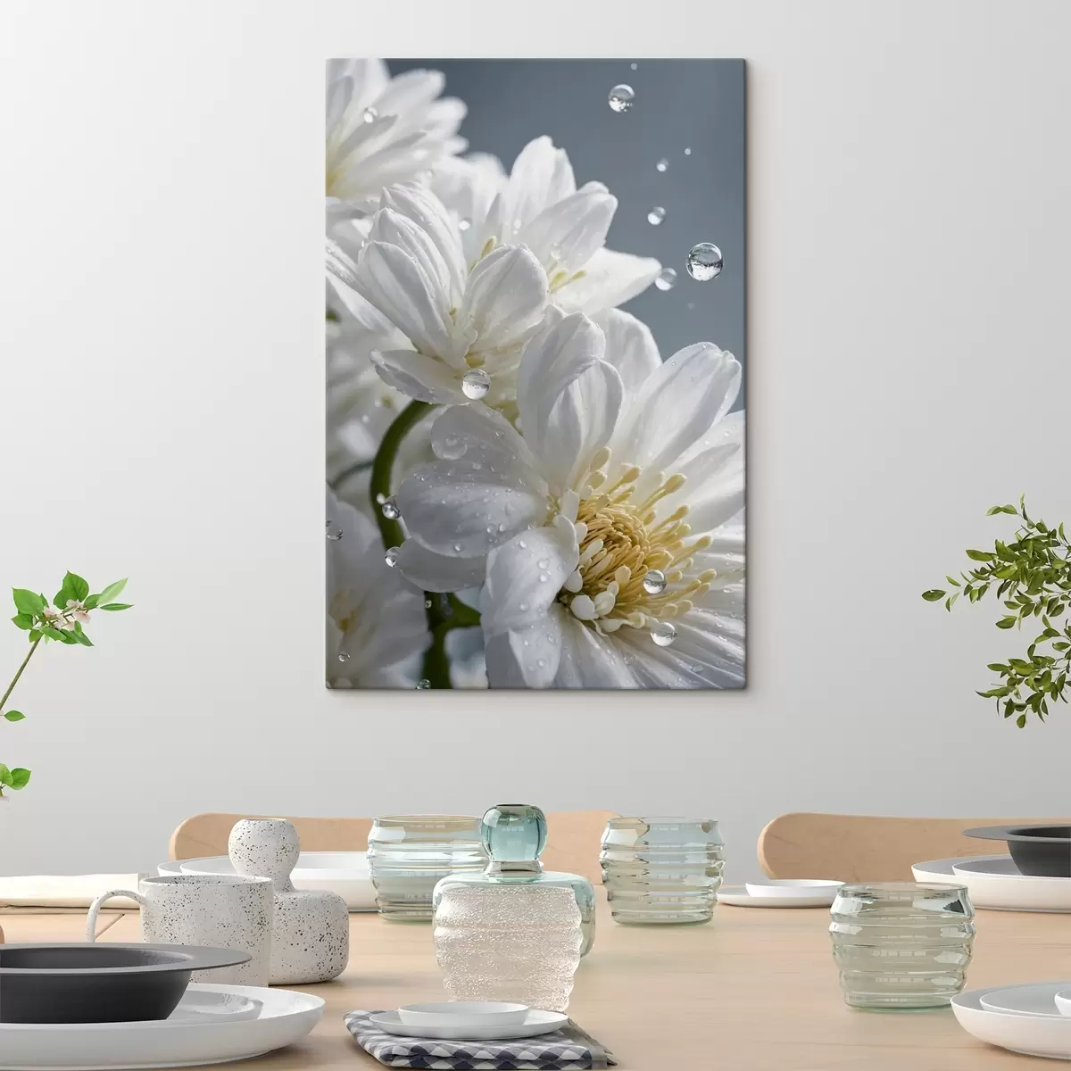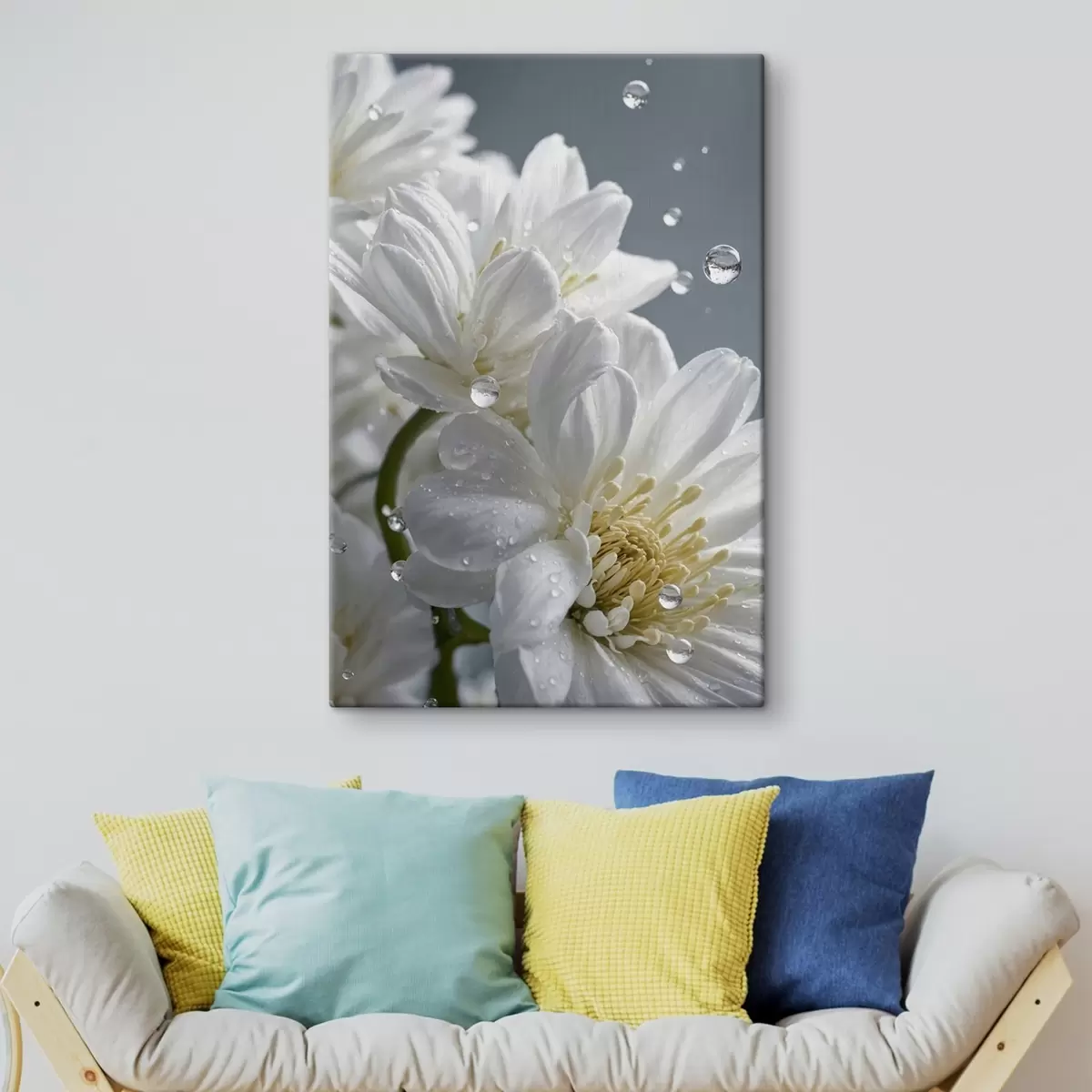 Pictură pe pânză Flori albe cu rouă Nr s44100