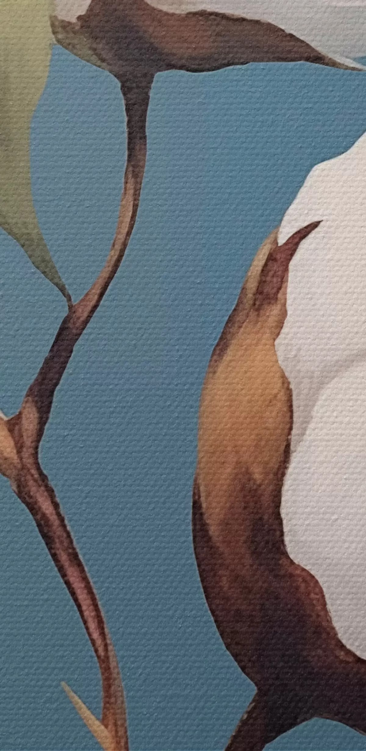 Țesătura fină a firelor de pe această pânză seamănă cu suprafața pânzelor artiștilor profesioniști.