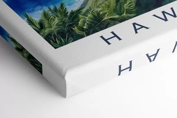 Pictură pe pânză Insula Hawaii, stil acuarelă, curcubeu, munți verzi, ocean Nr s44141