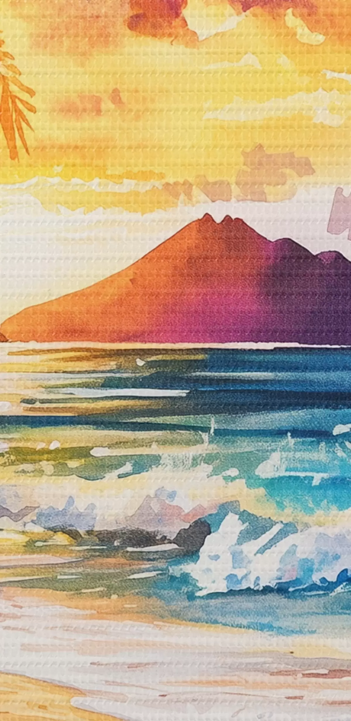 Tablouri Apus de soare pe insula Hawaii, palmieri, ocean, cer colorat, stil acuarelă s44142