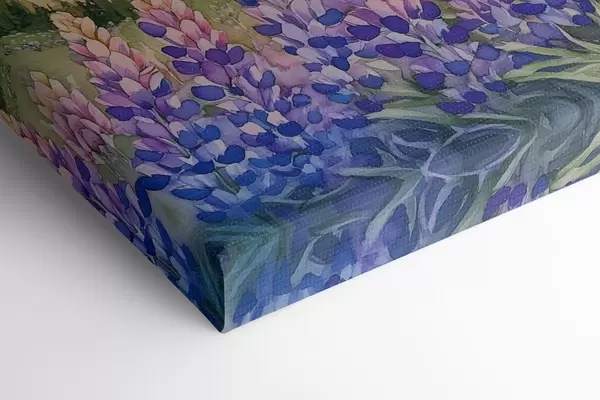 Pictură pe pânză Lupin flori, pajiște, munți, stil acuarelă, apus de soare cer Nr s44146