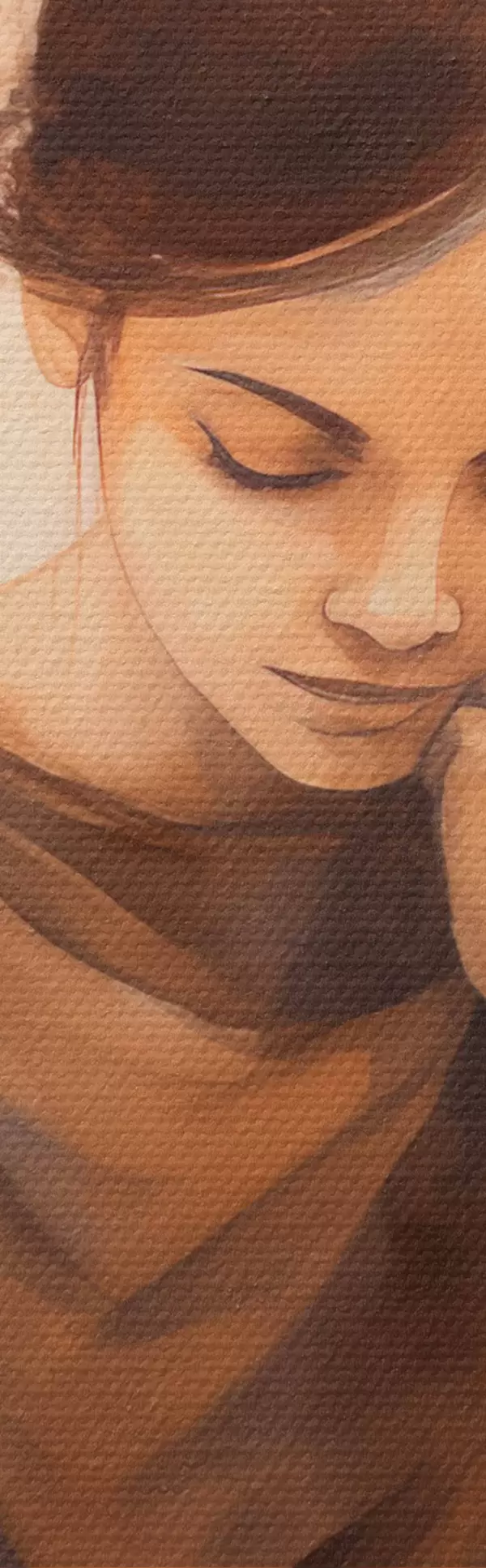 Țesătura fină a firelor de pe această pânză seamănă cu suprafața pânzelor artiștilor profesioniști.