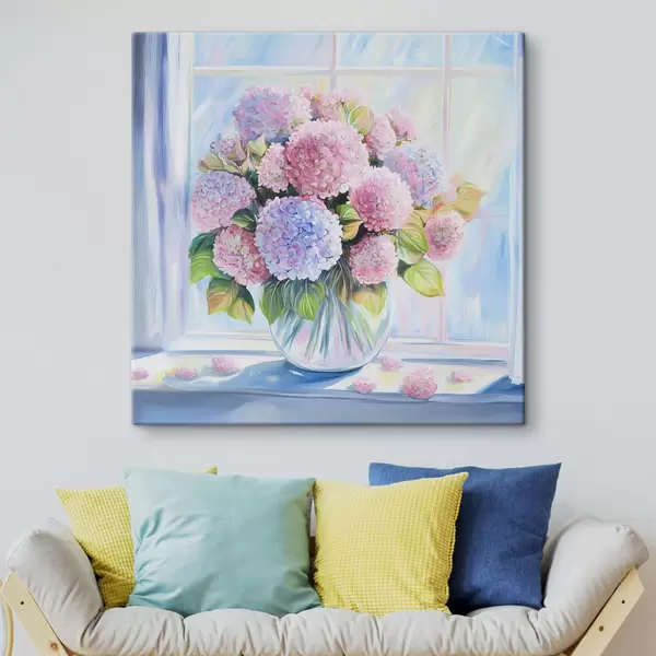 Pictură pe pânză Buchet de flori pe fereastră Nr s44210
