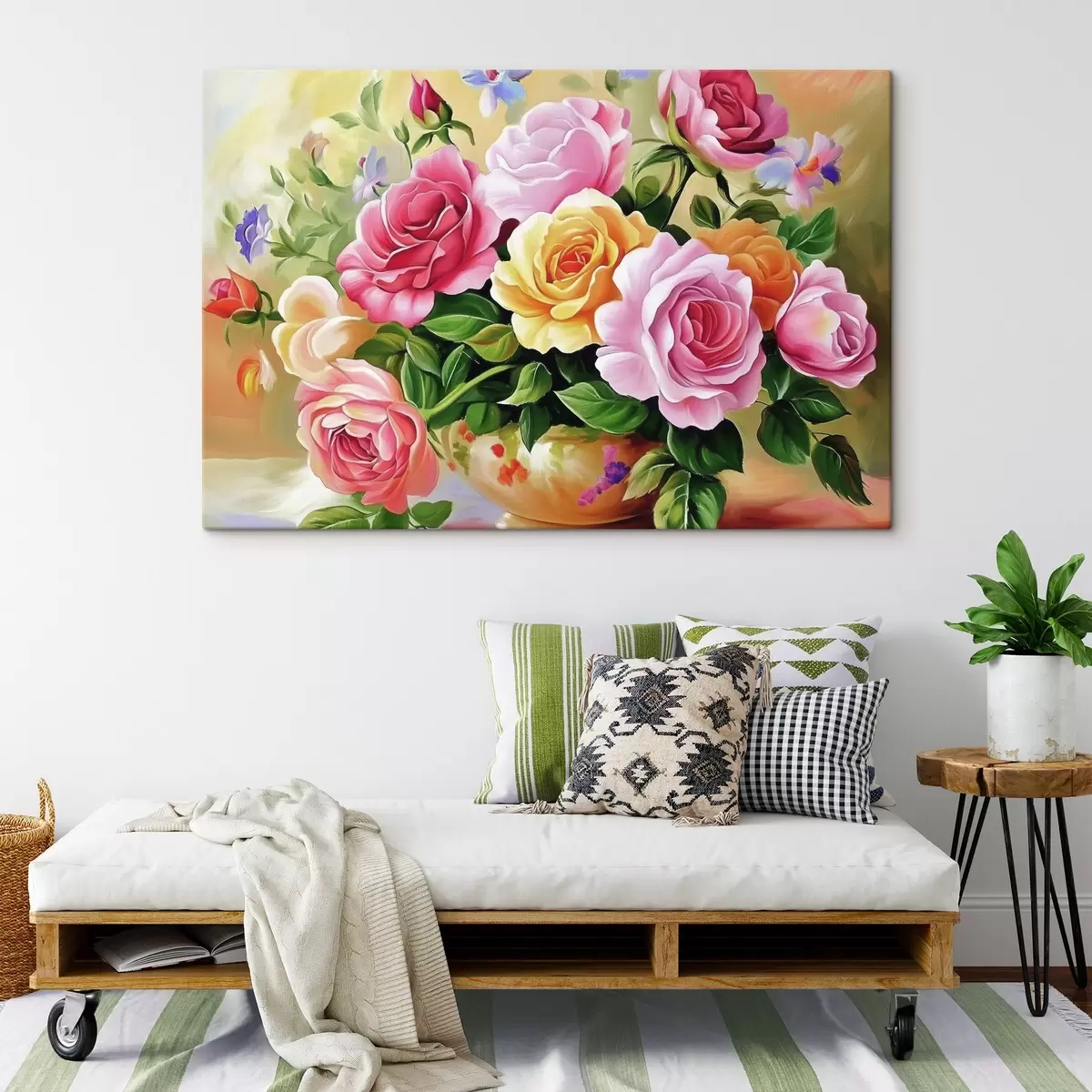 Pictură pe pânză Buchet luxuriant de flori strălucitoare Nr s44217