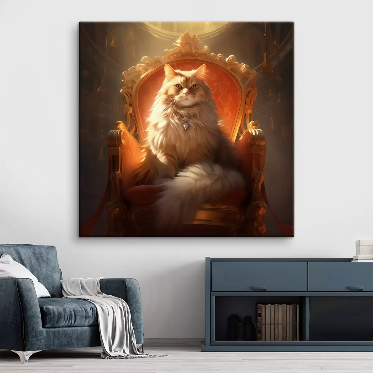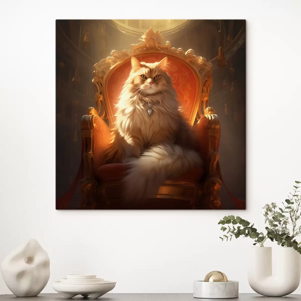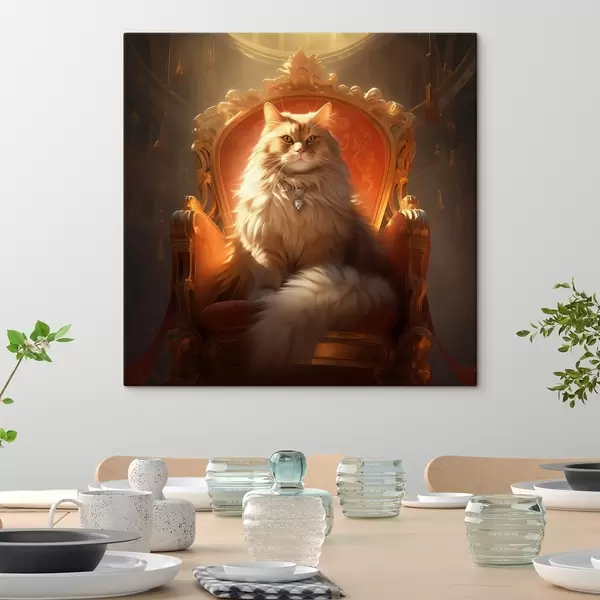 Tablouri Pisică regală cu ochi de chihlimbar pe un tron în razele de glorie în stil baroc s44250