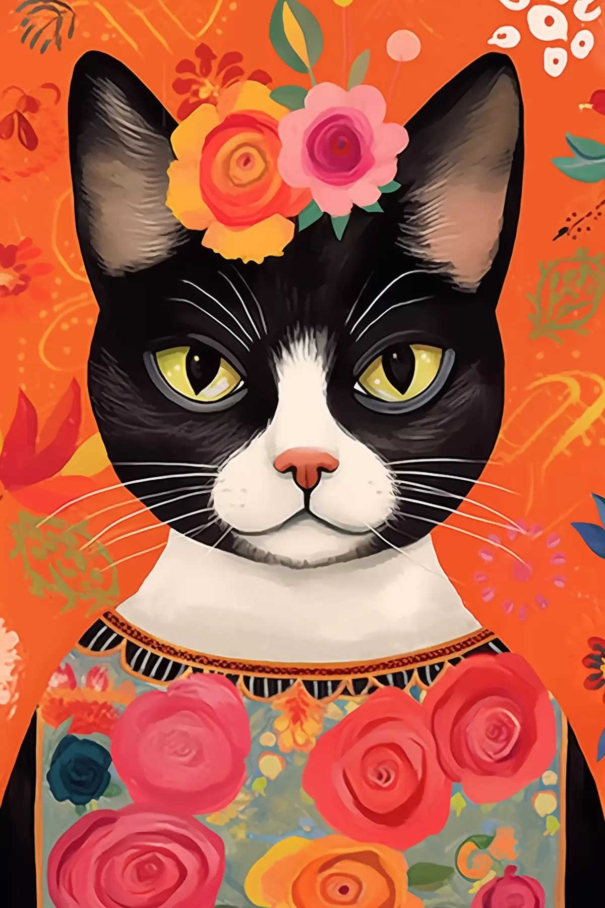 Tablouri Pisică într-un motiv floral s44262