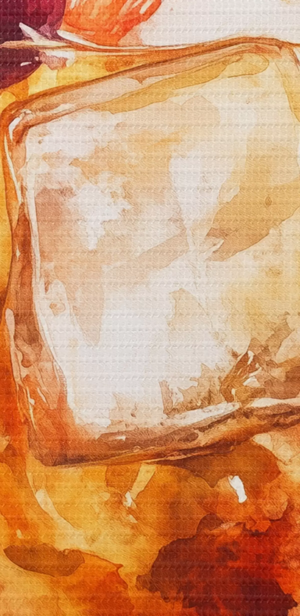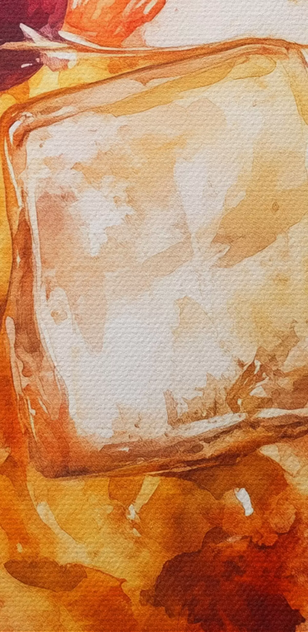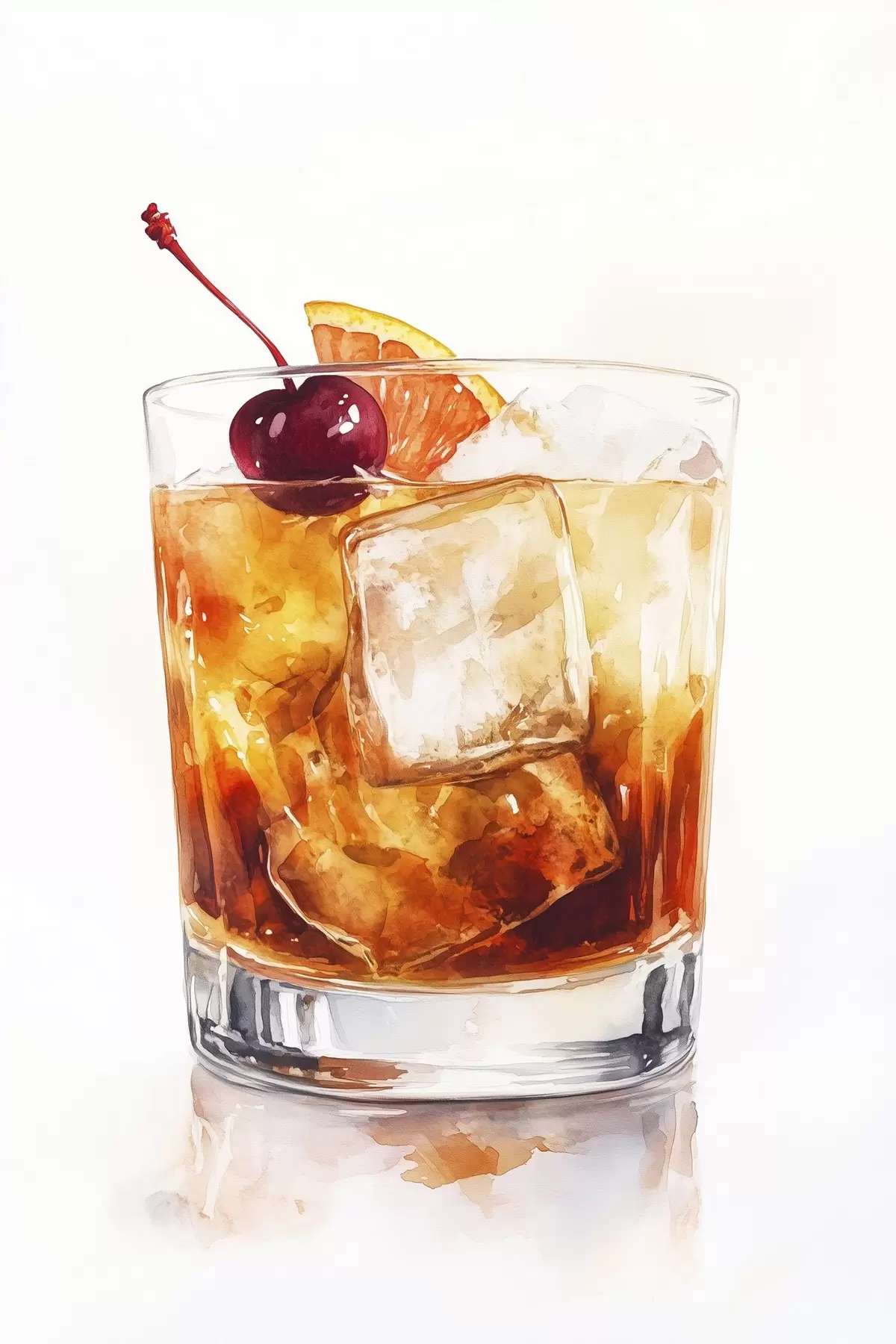 Tablouri Cocktail portocaliu cu gheață și cireșe, stil acuarelă s44303