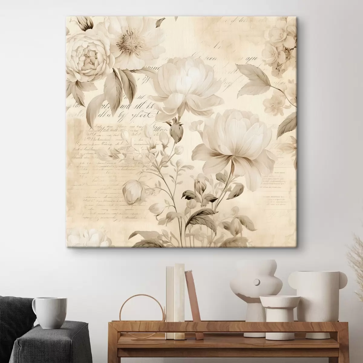 Pictură pe pânză Compoziție vintage de flori albe cremoase Nr s44332
