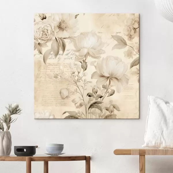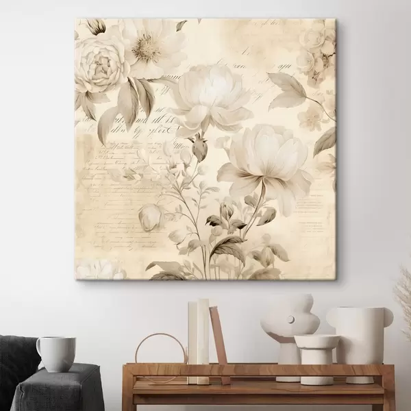 Tablouri Compoziție vintage de flori albe cremoase s44332