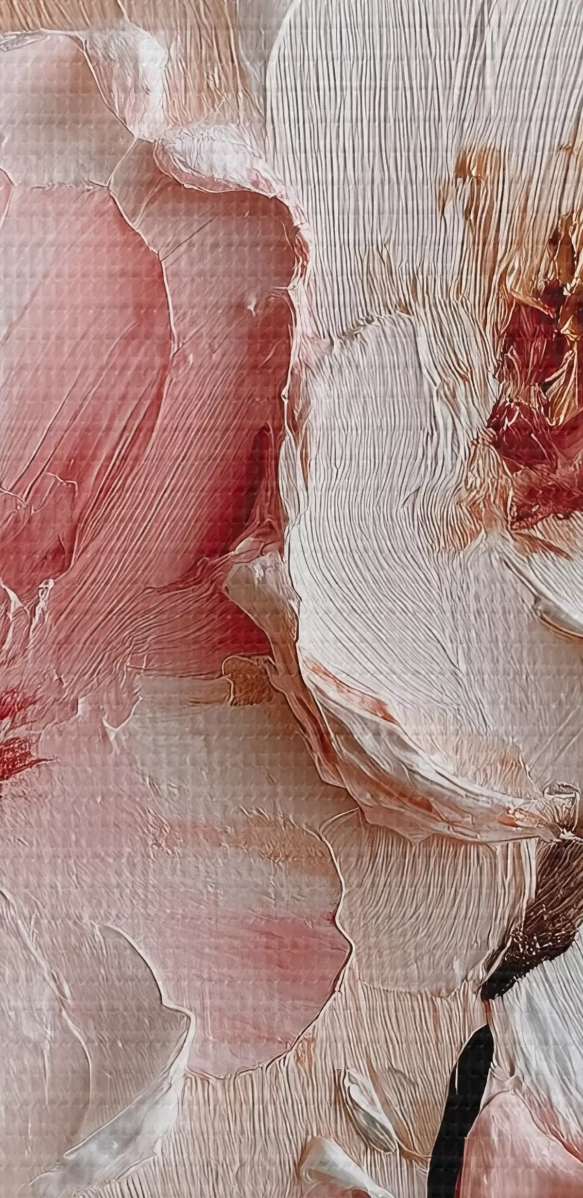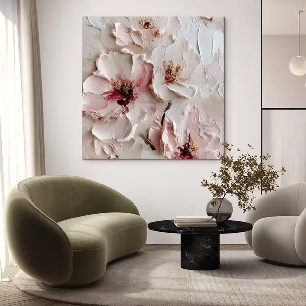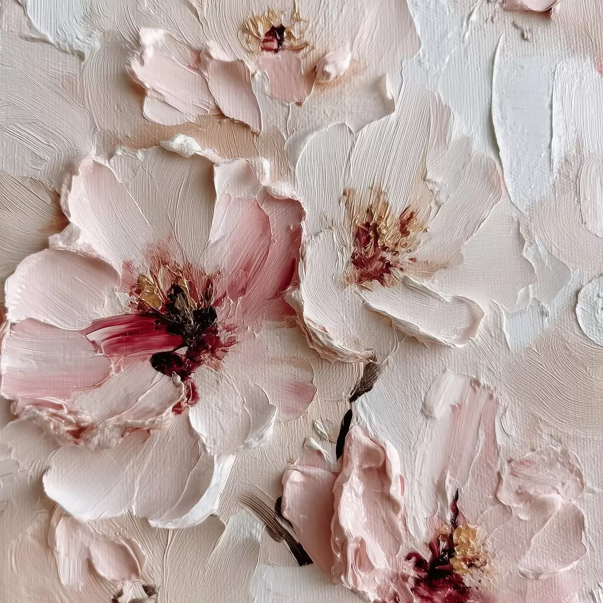 Tablouri Flori cu imitație în stil impasto cu tușe roz și albe s44333