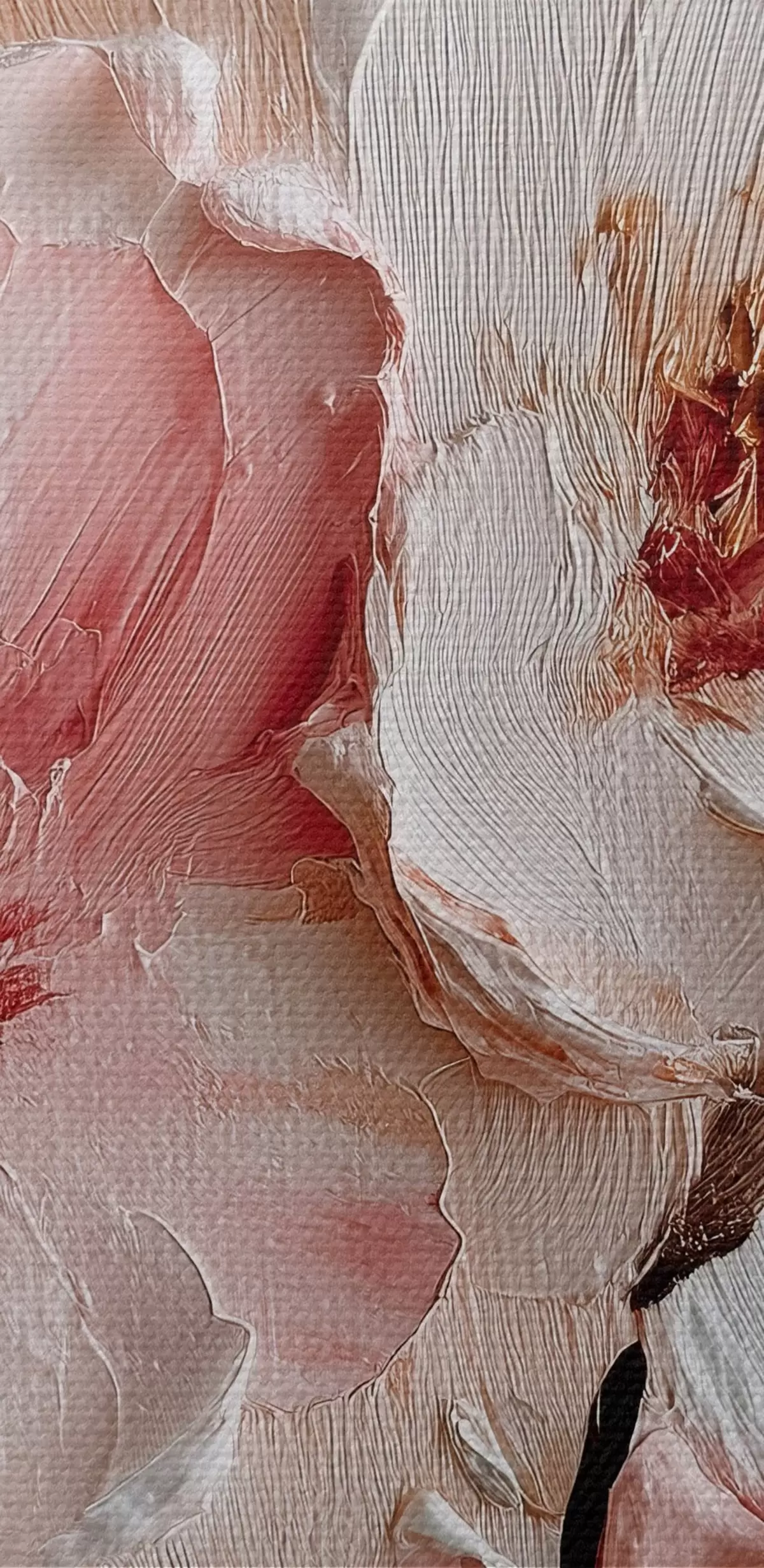 Pictură pe pânză Flori cu imitație în stil impasto cu tușe roz și albe Nr s44333