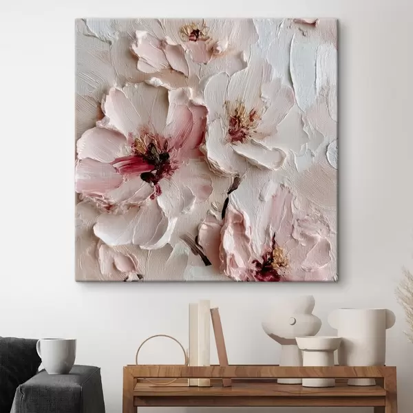 Tablouri Flori cu imitație în stil impasto cu tușe roz și albe s44333