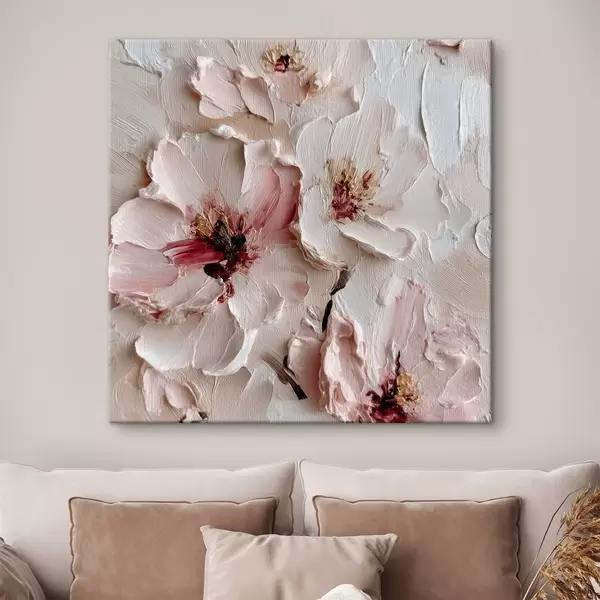 Pictură pe pânză Flori cu imitație în stil impasto cu tușe roz și albe Nr s44333