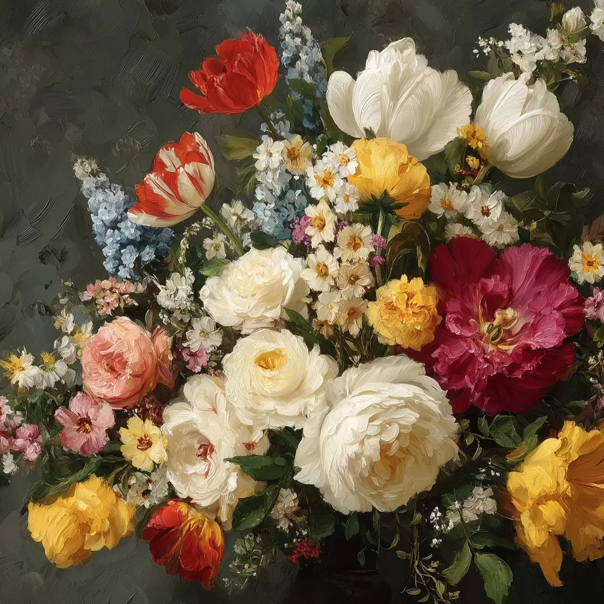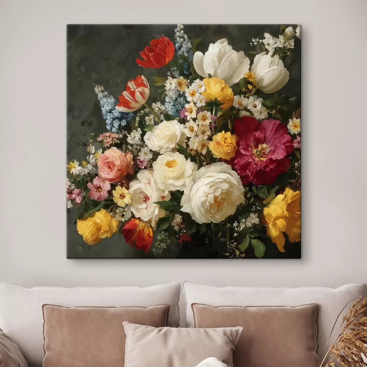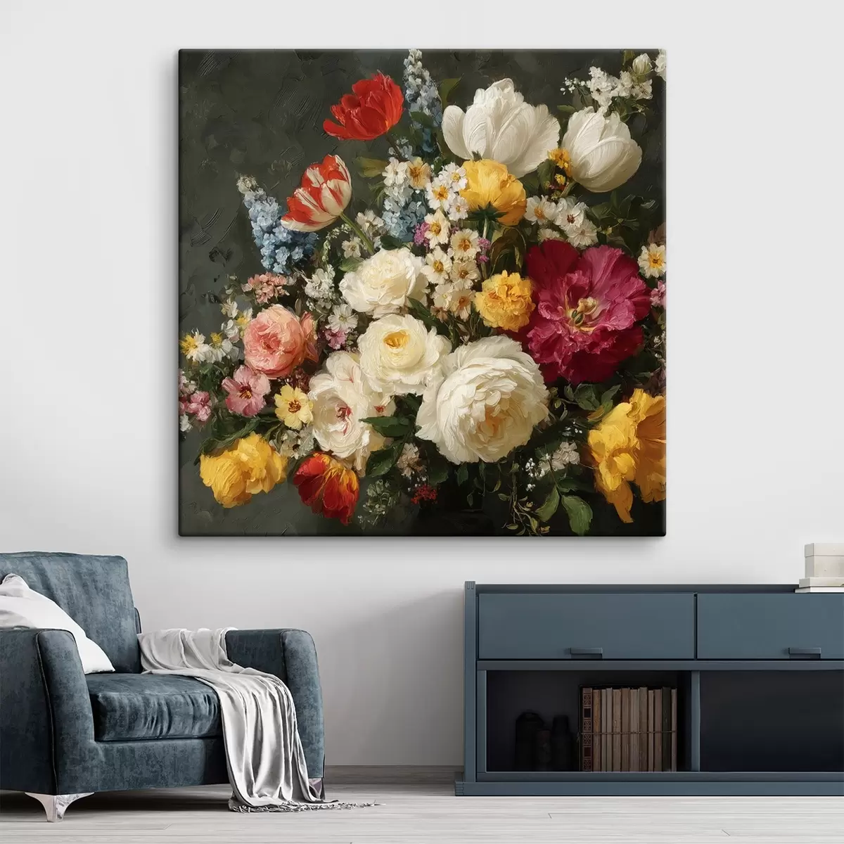 Pictură pe pânză Buchet de flori diverse cu nuanțe bogate Nr s44334