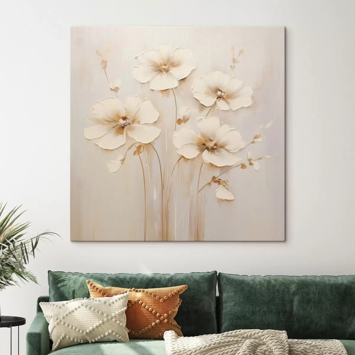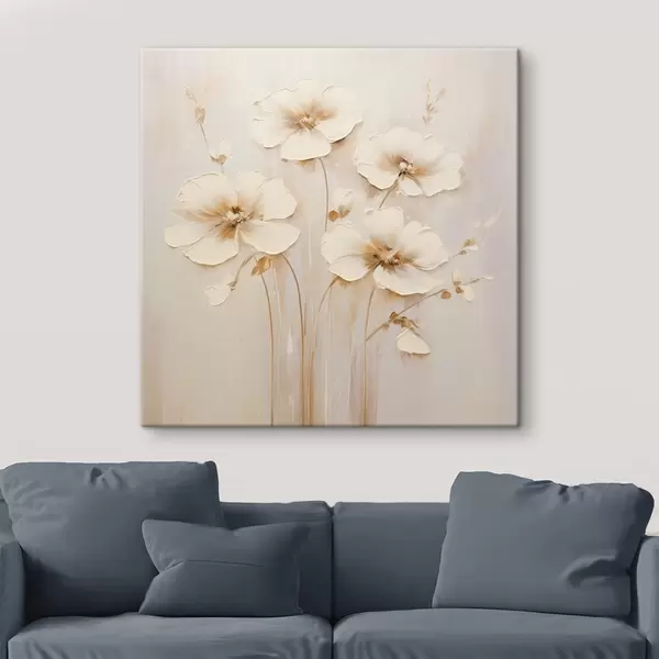Pictură pe pânză Flori bej cu petale voluminoase în tonuri pastelate Nr s44337