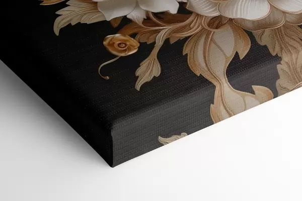 Pictură pe pânză Flori albe voluminoase pe un fundal negru Nr s44340