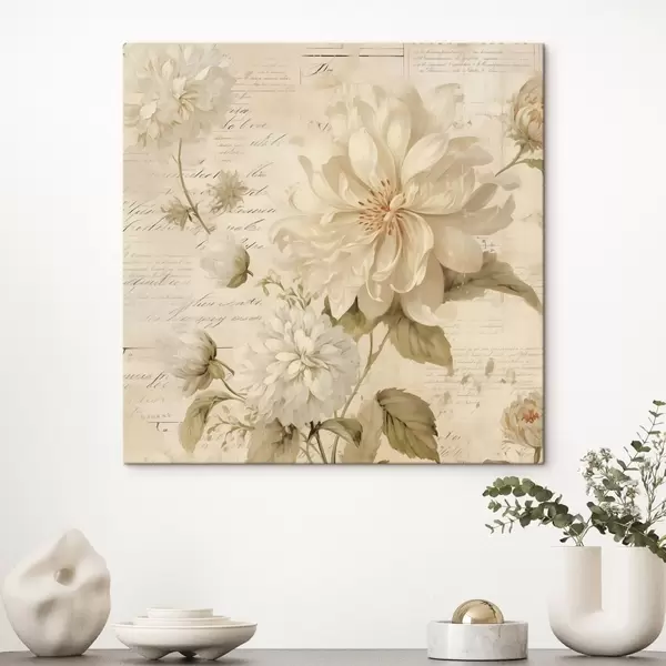 Pictură pe pânză Daliile albe pe paginile trecutului Nr s44342