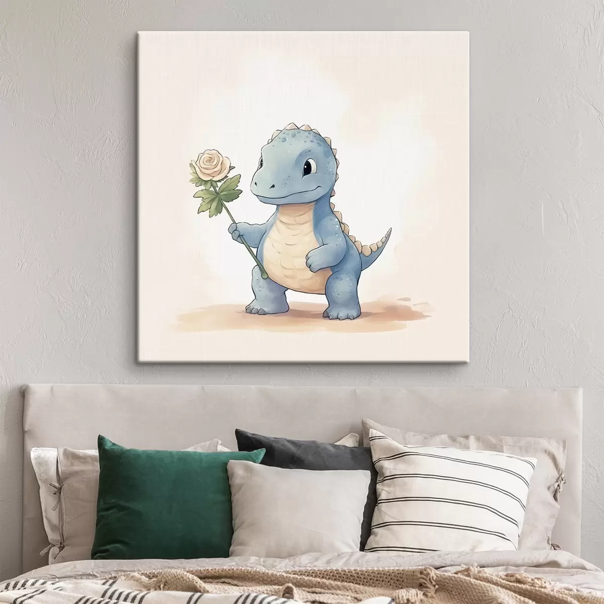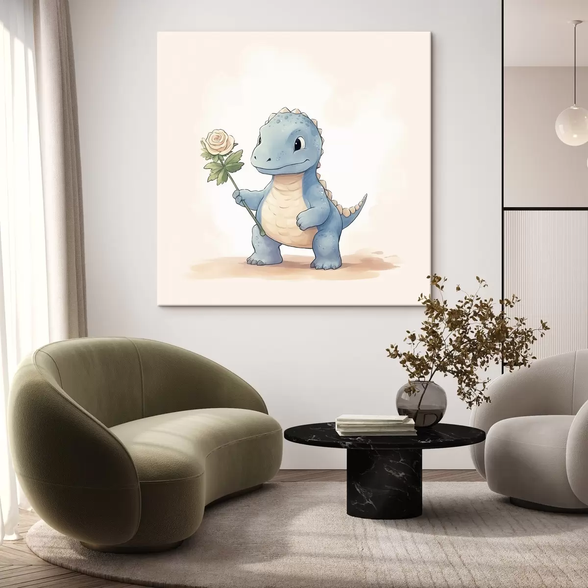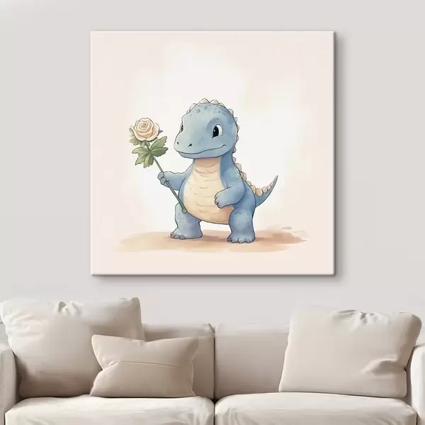 Pictură pe pânză Mic dinozaur și o floare delicată Nr s44351