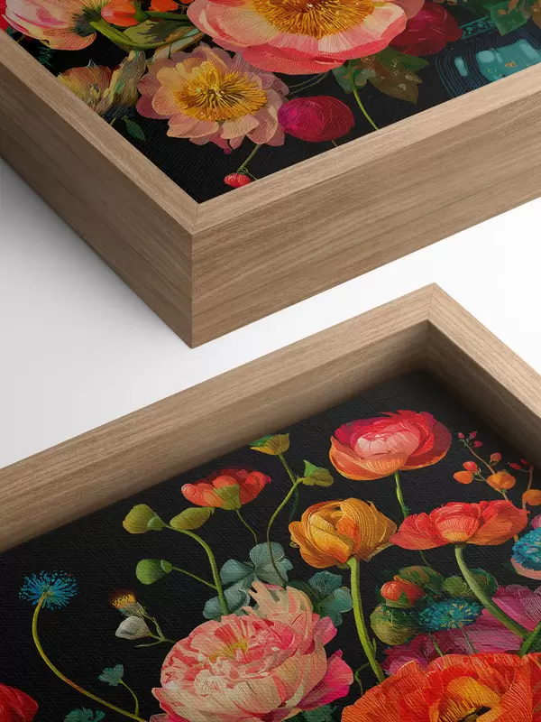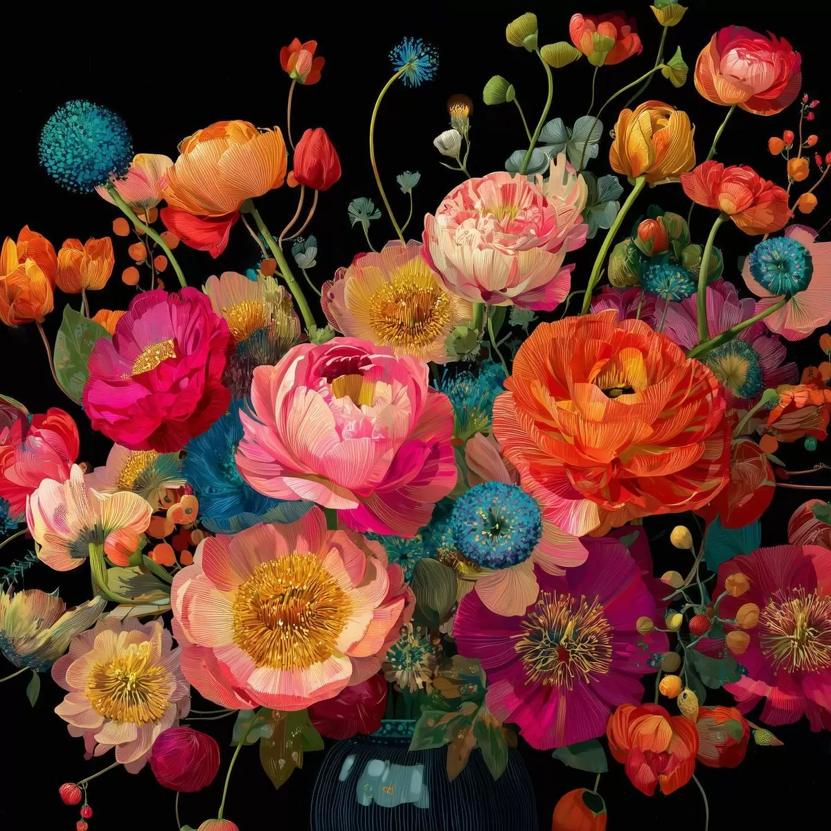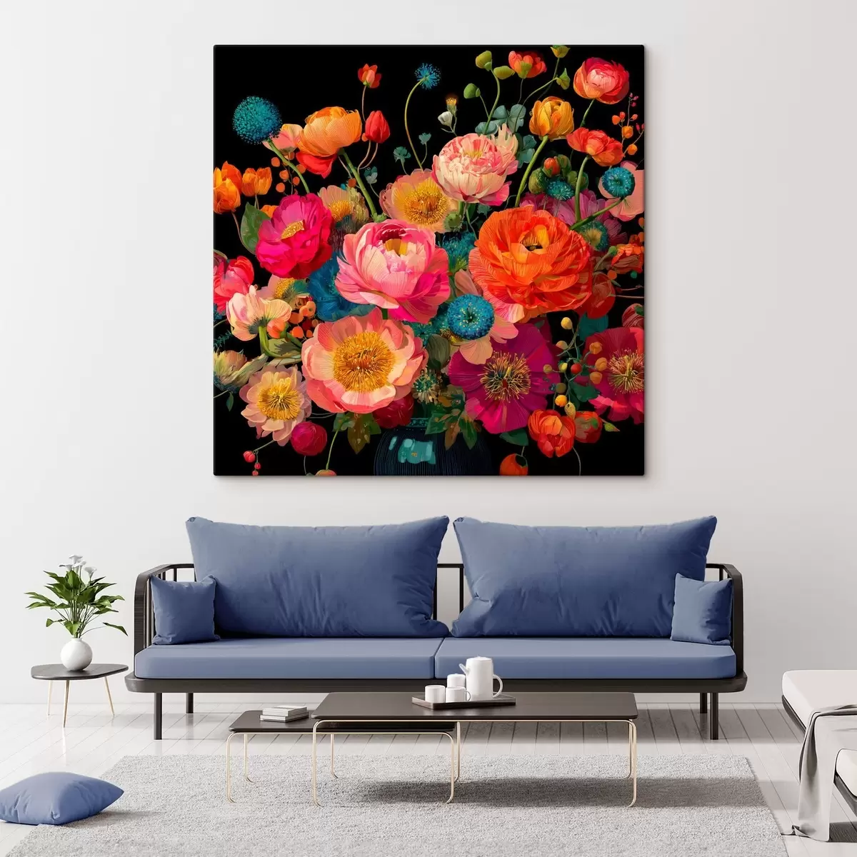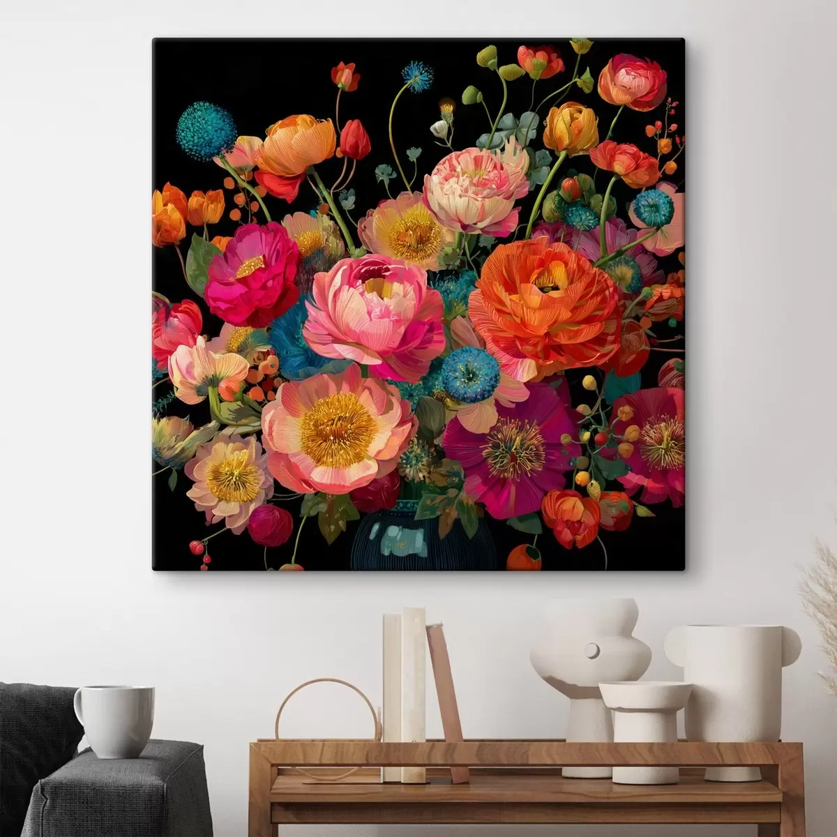 Pictură pe pânză Extravaganță florală pe un fundal negru Nr s44352