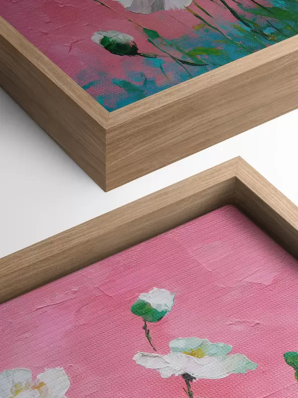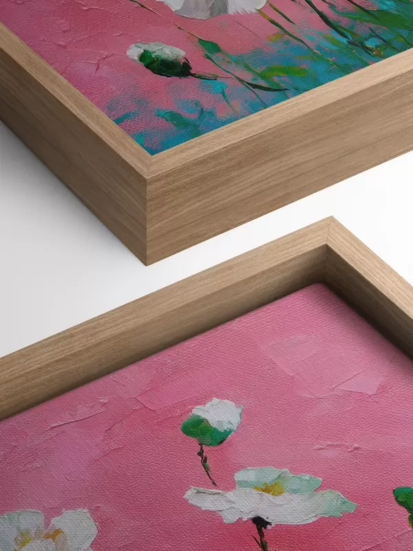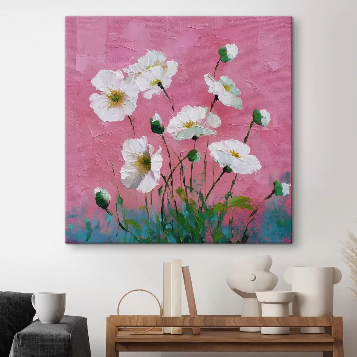 Pictură pe pânză Flori albe pe un fundal roz Nr s44360