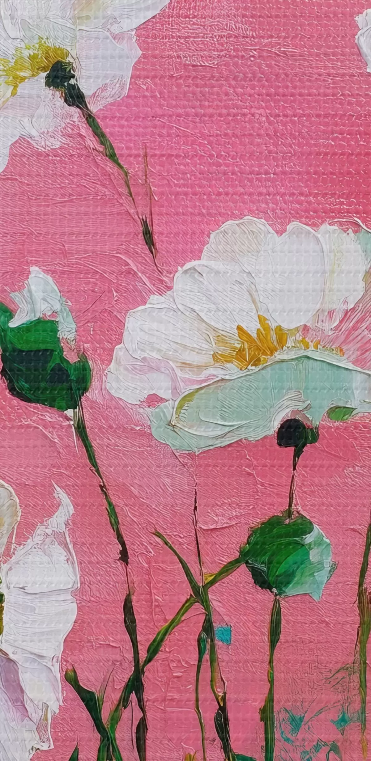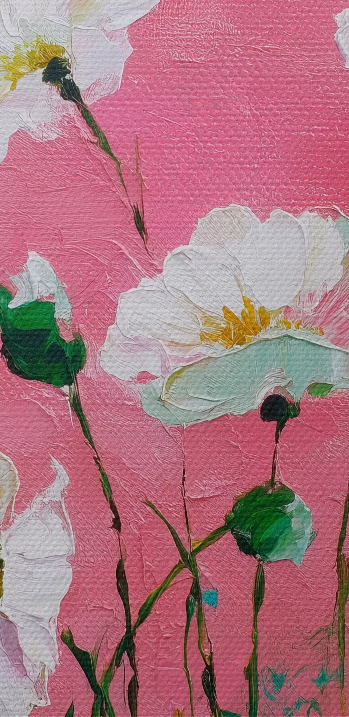 Pictură pe pânză Flori albe pe un fundal roz Nr s44360