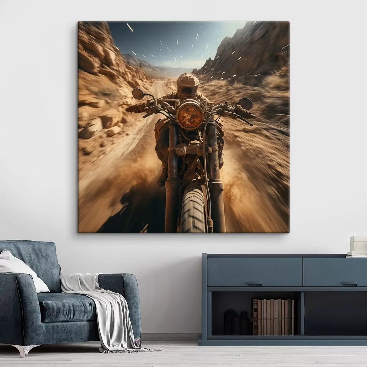 Pictură pe pânză Motociclist accelerând pe un drum din deșert Nr s44361