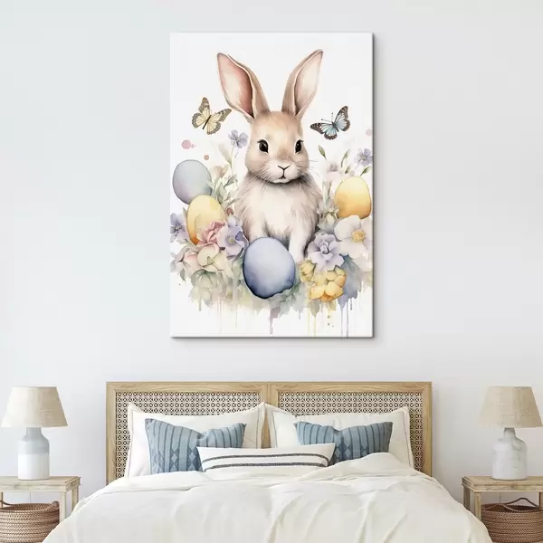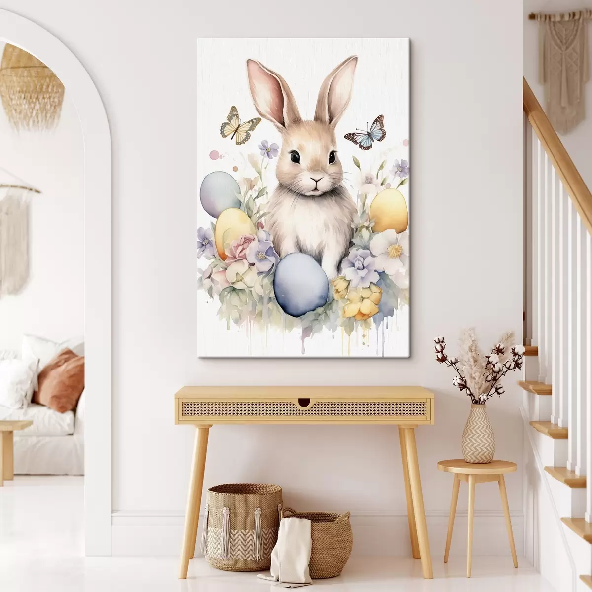 Tablouri Iepuraș drăguț în stil acuarelă în flori cu fluturi s44388