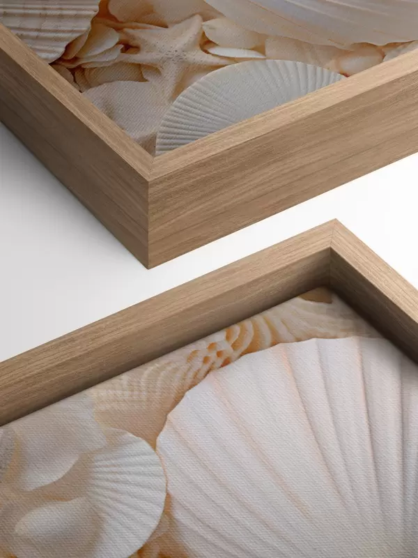 Pictură pe pânză Scoici albe decorative și stele de mare, creând o compoziție monocromatică texturată Nr s44392