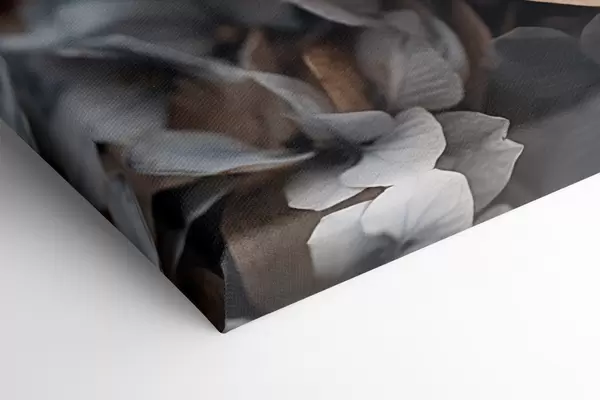 Pictură pe pânză Flori de hortensie, petale albastru deschis și bej, cu texturi detaliate, aranjament floral elegant Nr s44394