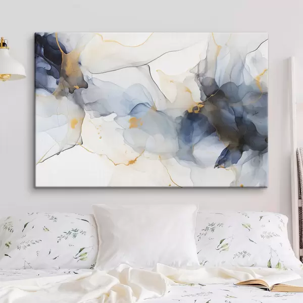Pictură pe pânză Pictură abstractă cu cerneală albastră, forme fluide și organice, texturi delicate pe un fundal alb Nr s44397