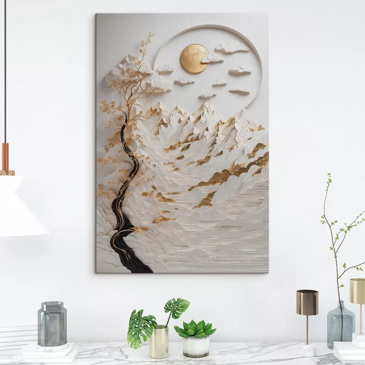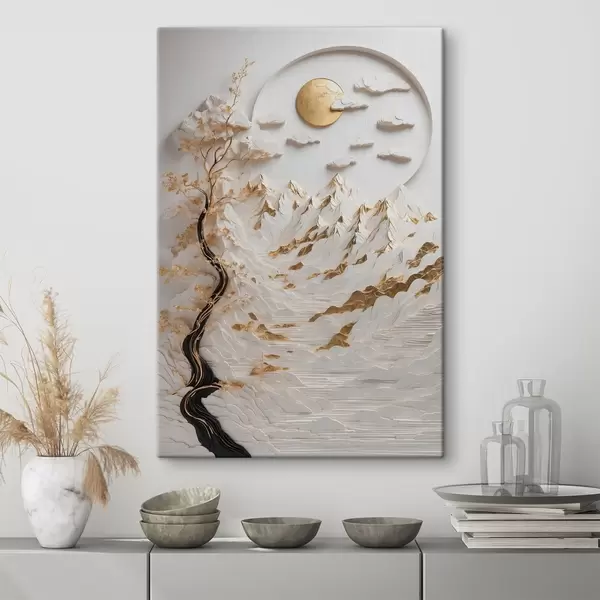 Pictură pe pânză Munți abstracți și soare Nr s44428