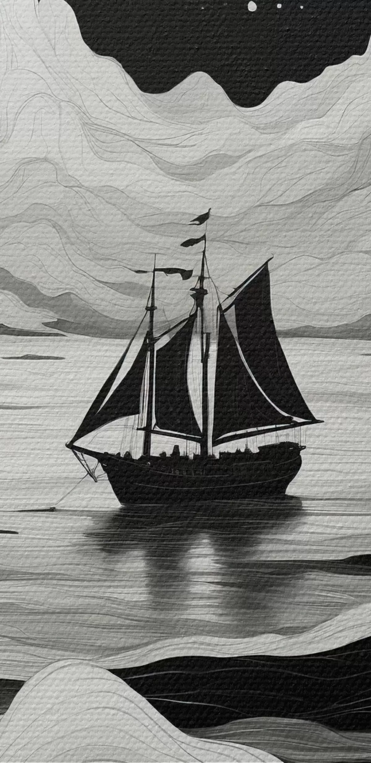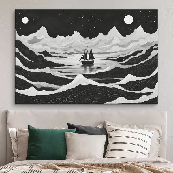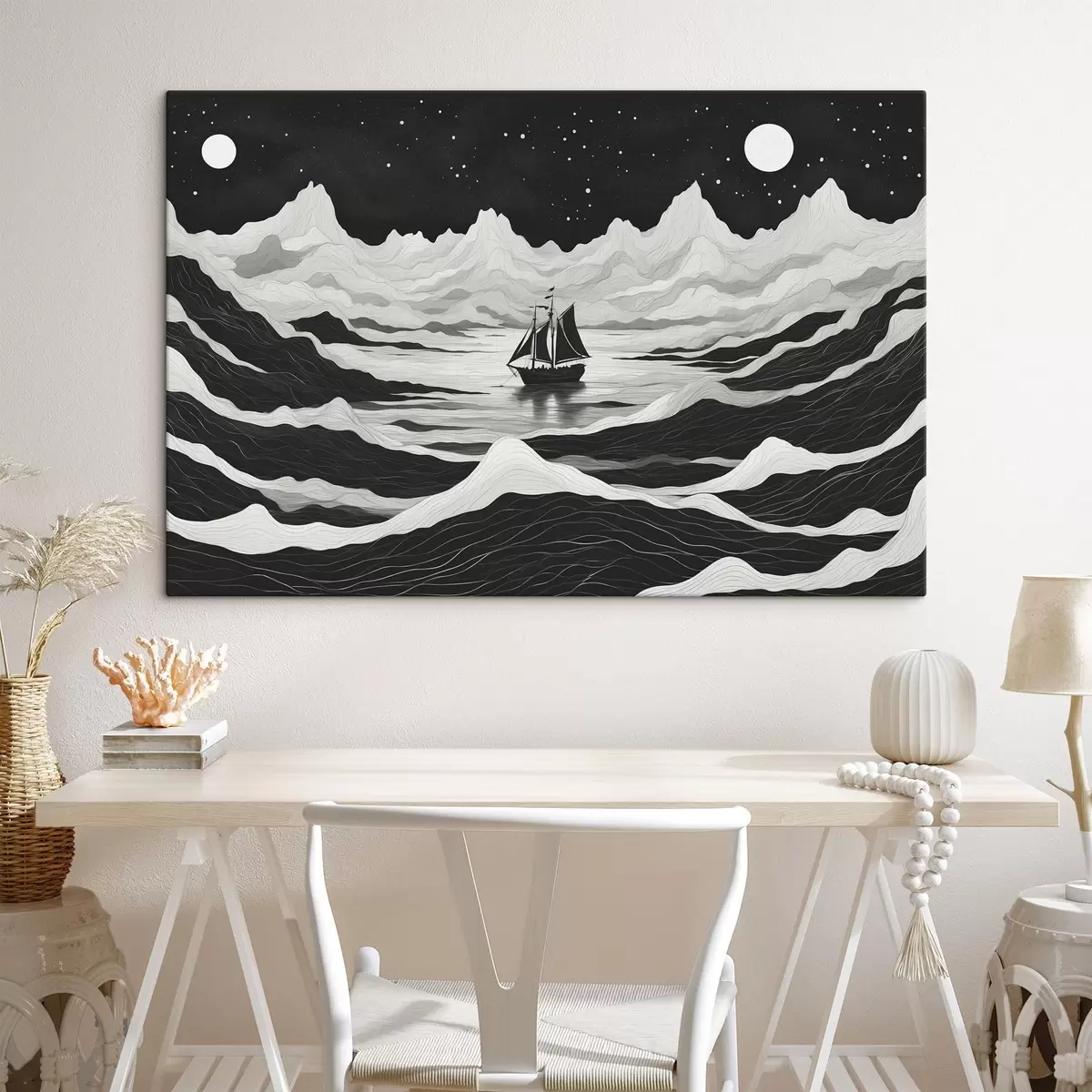Pictură pe pânză Navă în marea cețoasă a nopții Nr s44437