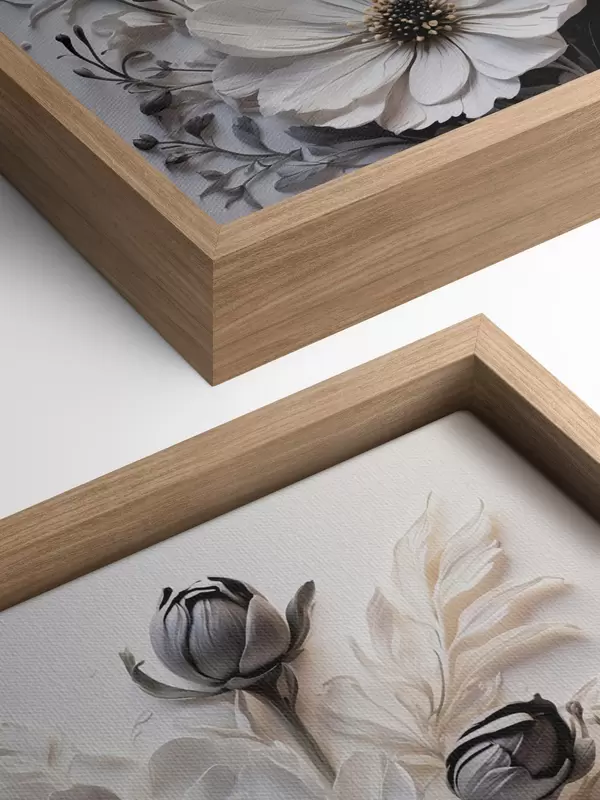 Tablouri Flori albe și negre pe fundal alb s44446
