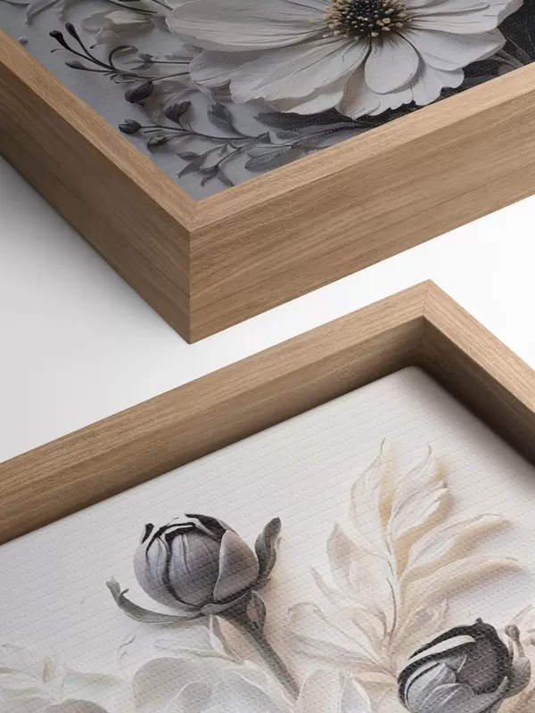 Pictură pe pânză Flori albe și negre pe fundal alb Nr s44446