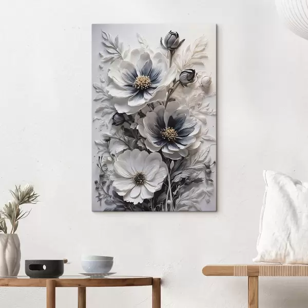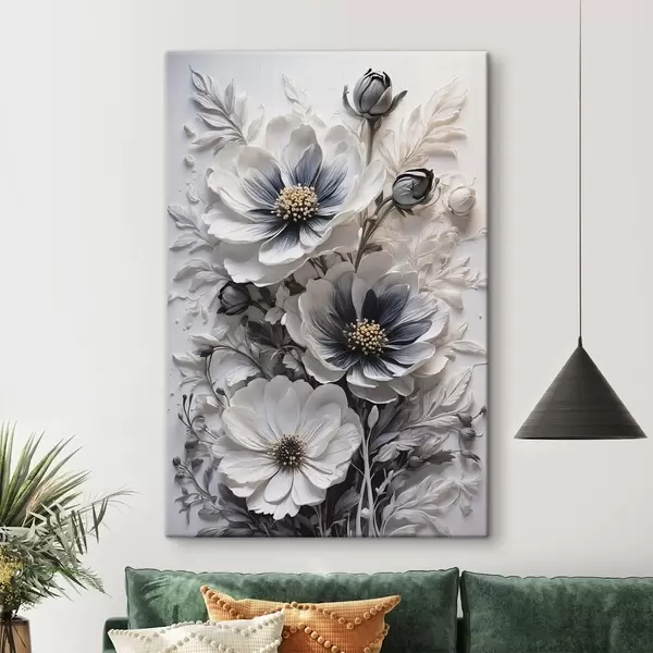 Pictură pe pânză Flori albe și negre pe fundal alb Nr s44446