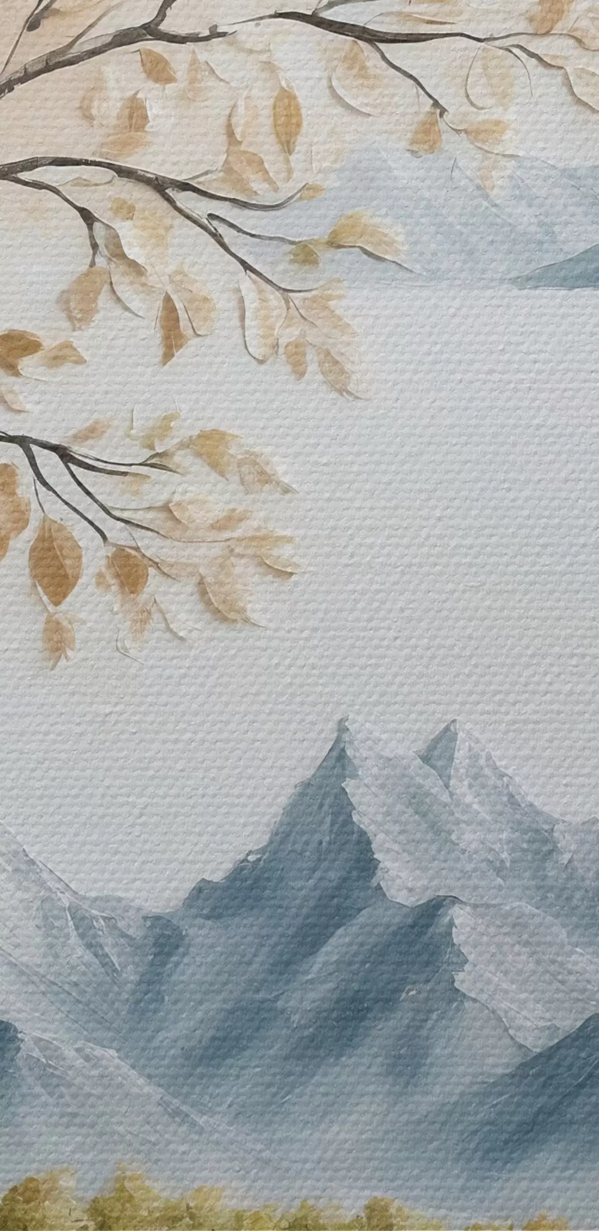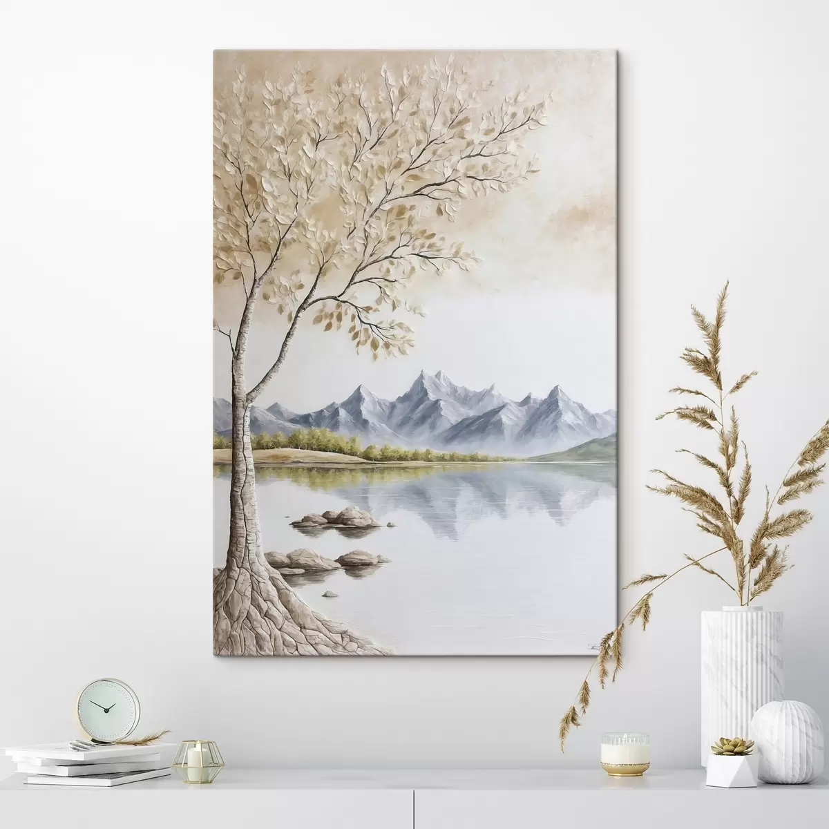 Pictură pe pânză Copac pe fundal lac și munți înzăpeziți Nr s44459
