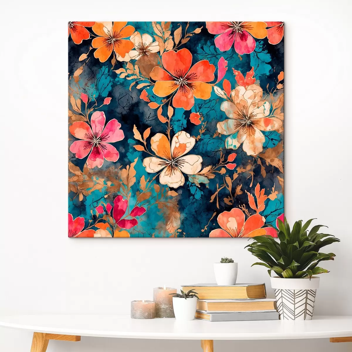 Pictură pe pânză Tablou acrilic multicolor în fundal albastru închis Tablou acrilic abstract multicolor în fundal albastru închis fundal albastru Nr s44460