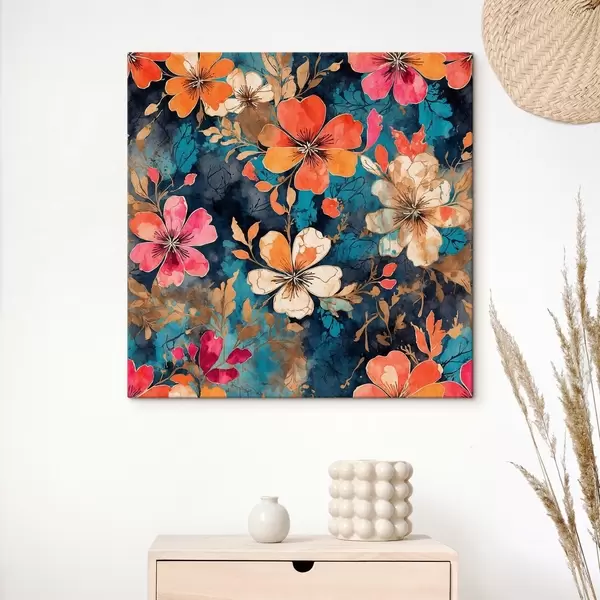 Pictură pe pânză Tablou acrilic multicolor în fundal albastru închis Tablou acrilic abstract multicolor în fundal albastru închis fundal albastru Nr s44460