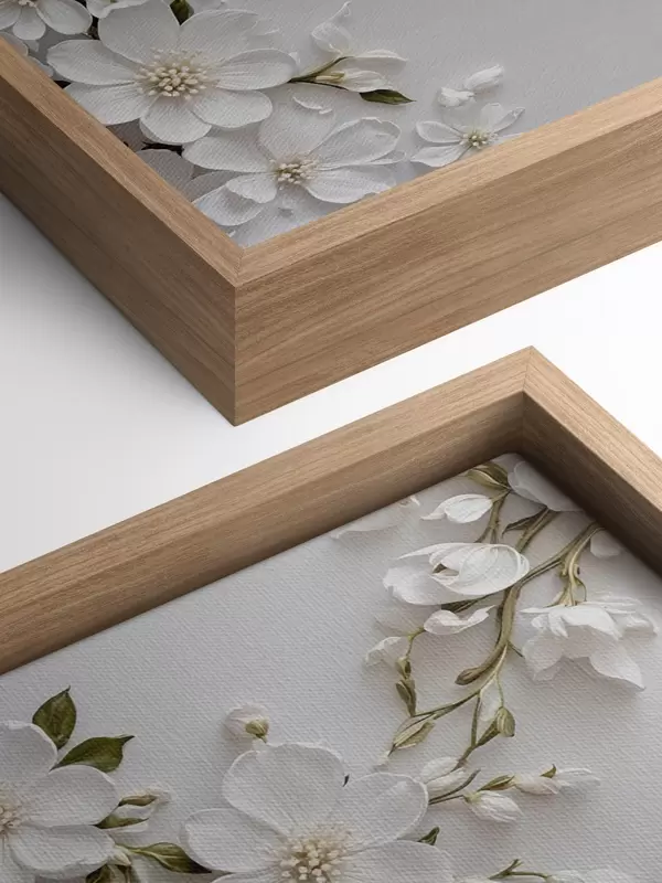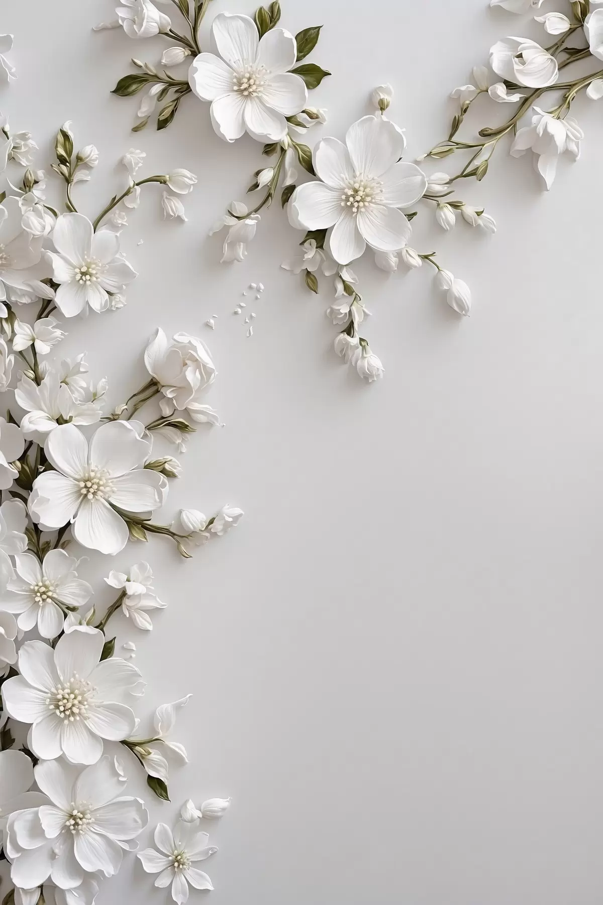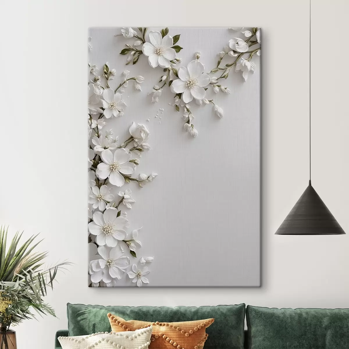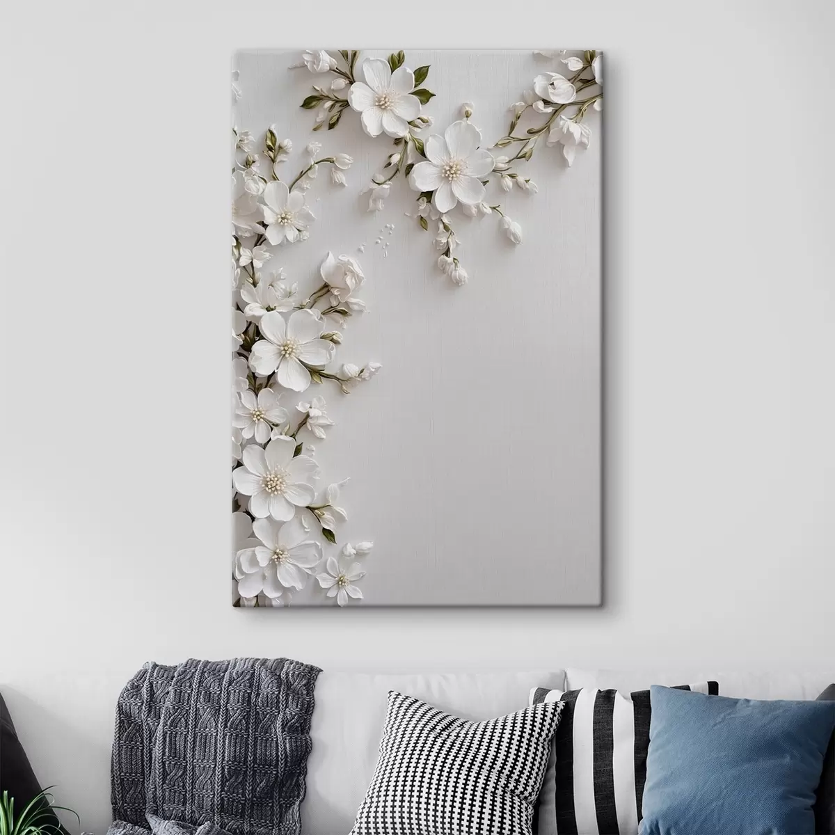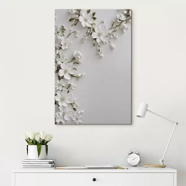 Pictură pe pânză Flori albe pe fundal alb de perete Nr s44466