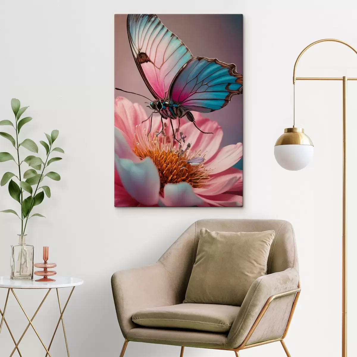 Pictură pe pânză Fluturele stă pe o floare Nr s44470