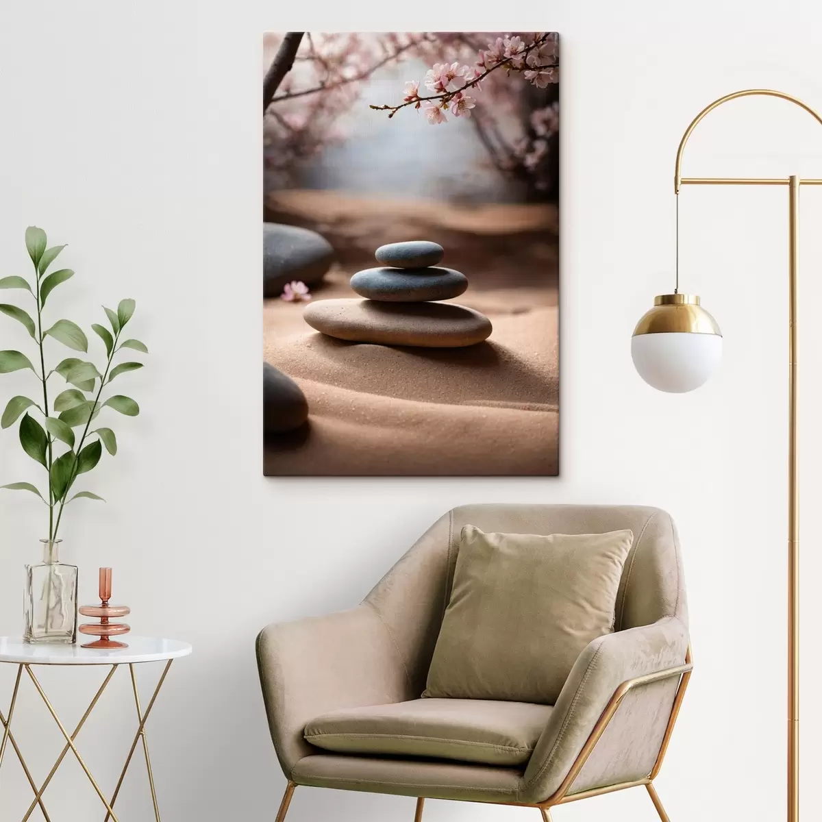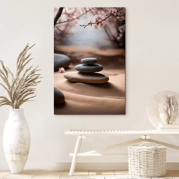 Pictură pe pânză Pietre pe nisip pe fundal încețoșat Nr s44475