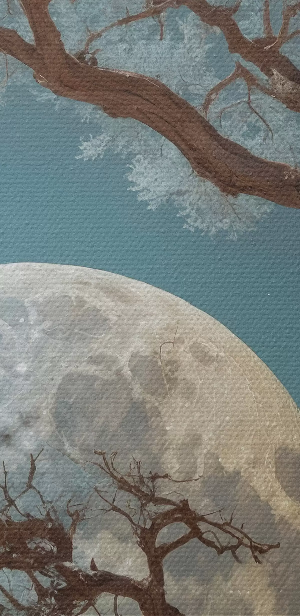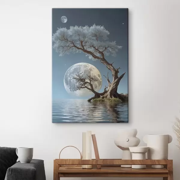Pictură pe pânză Copac în creștere în mijlocul unui lac pe fundal luna Nr s44481