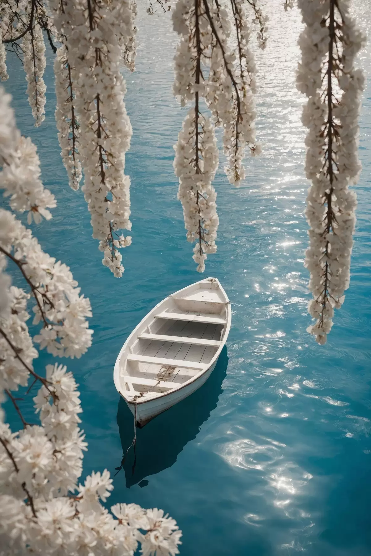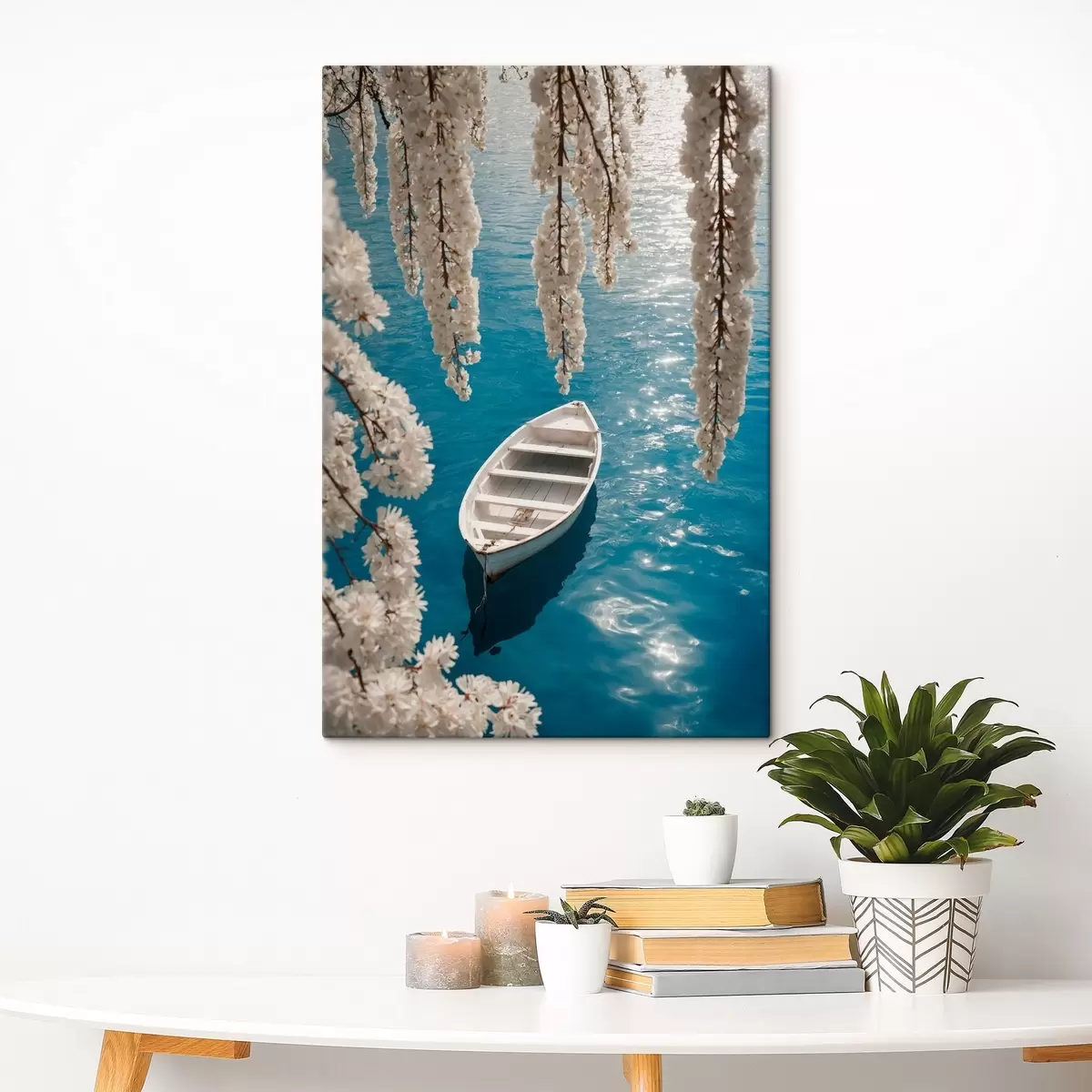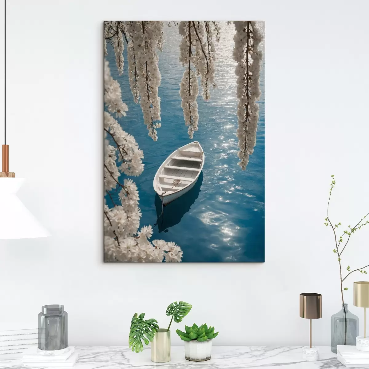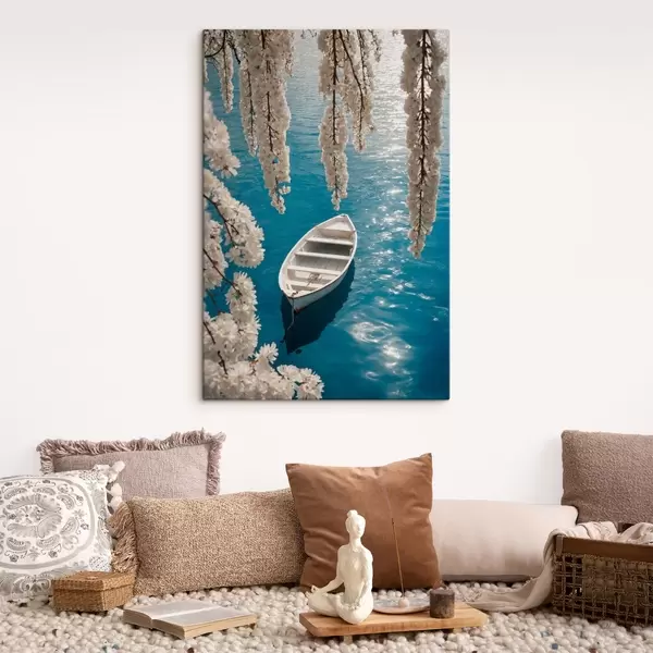 Pictură pe pânză Barcă albă sub un copac Nr s44482