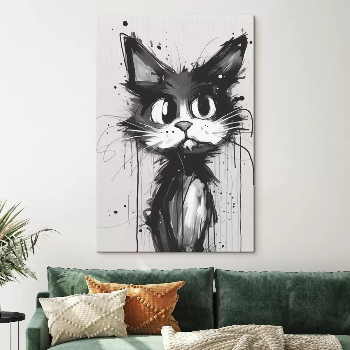 Pictură pe pânză Pisică în stil schiță cu stropi de vopsea Nr s44483