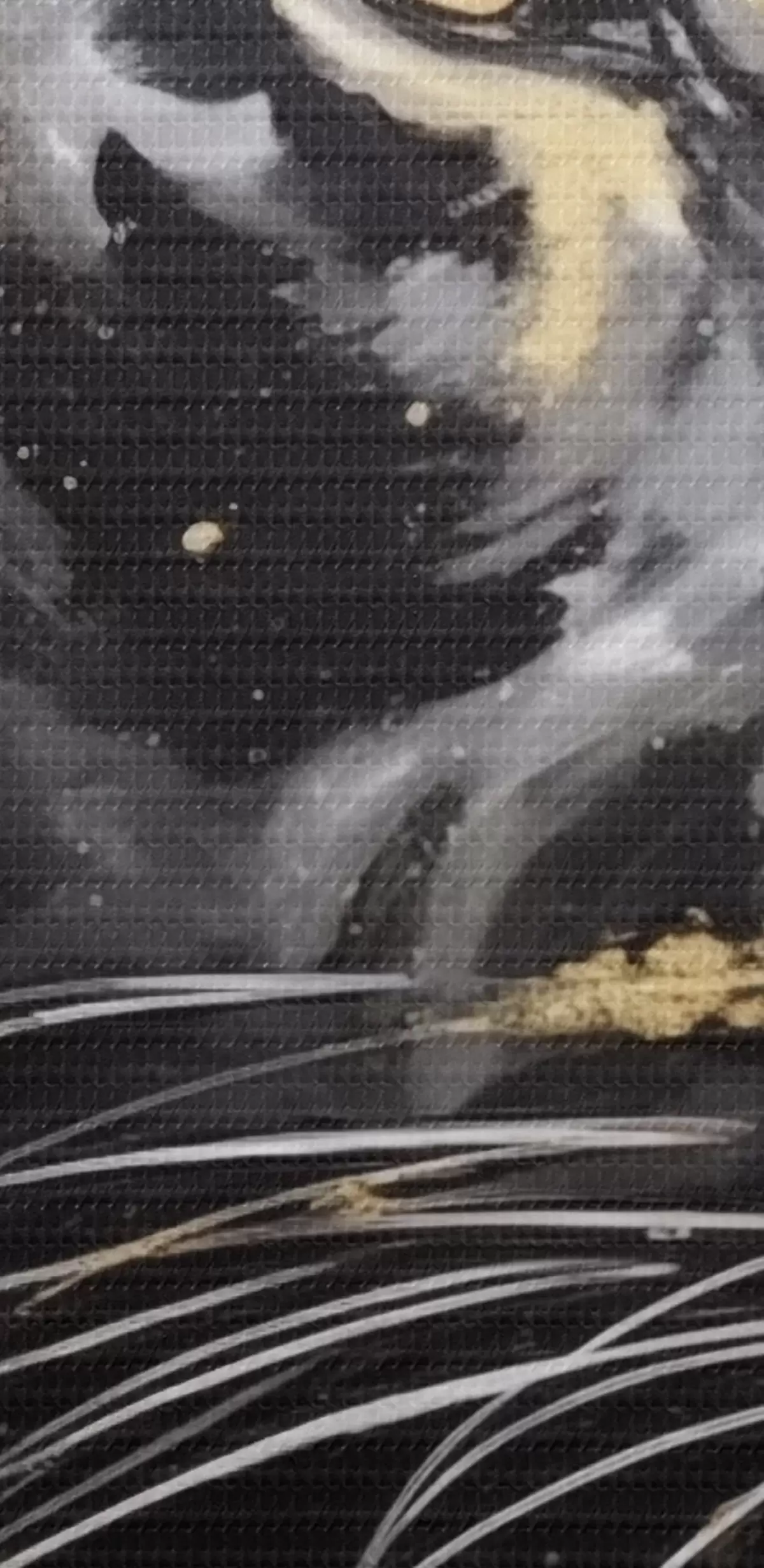 Țesătura fină a firelor de pe această pânză seamănă cu suprafața pânzelor artiștilor profesioniști.
