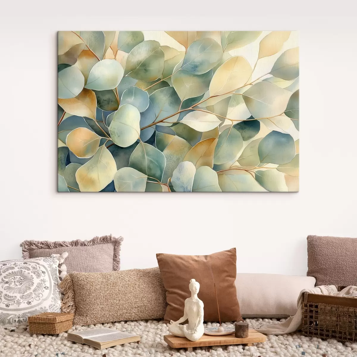 Pictură pe pânză Frunze de eucalipt, stil acuarelă, natură Nr s44502